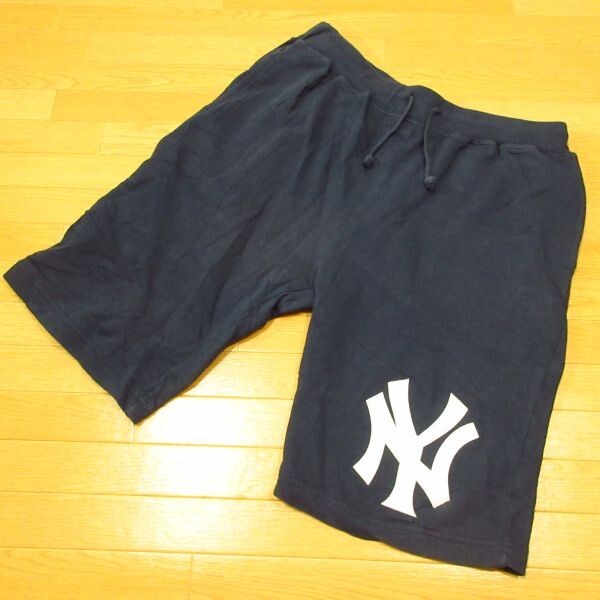 ◎使用少なめ!MLB NY ヤンキース Majestic マジェスティック スウェット ハーフパンツ ユニフォーム 野球 メンズ 紺 Lサイズ◆PA3833