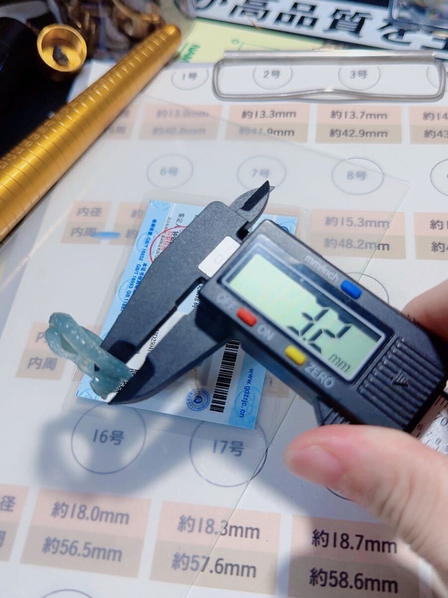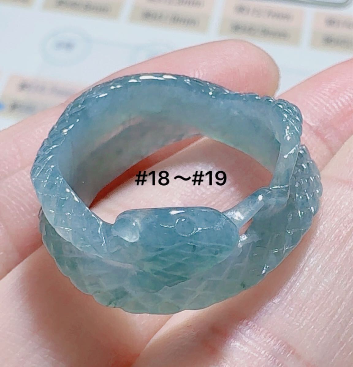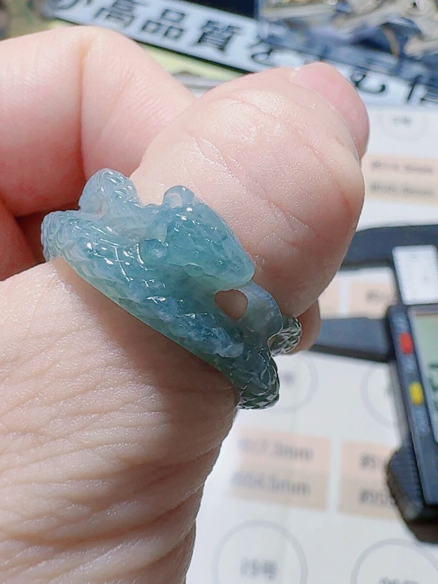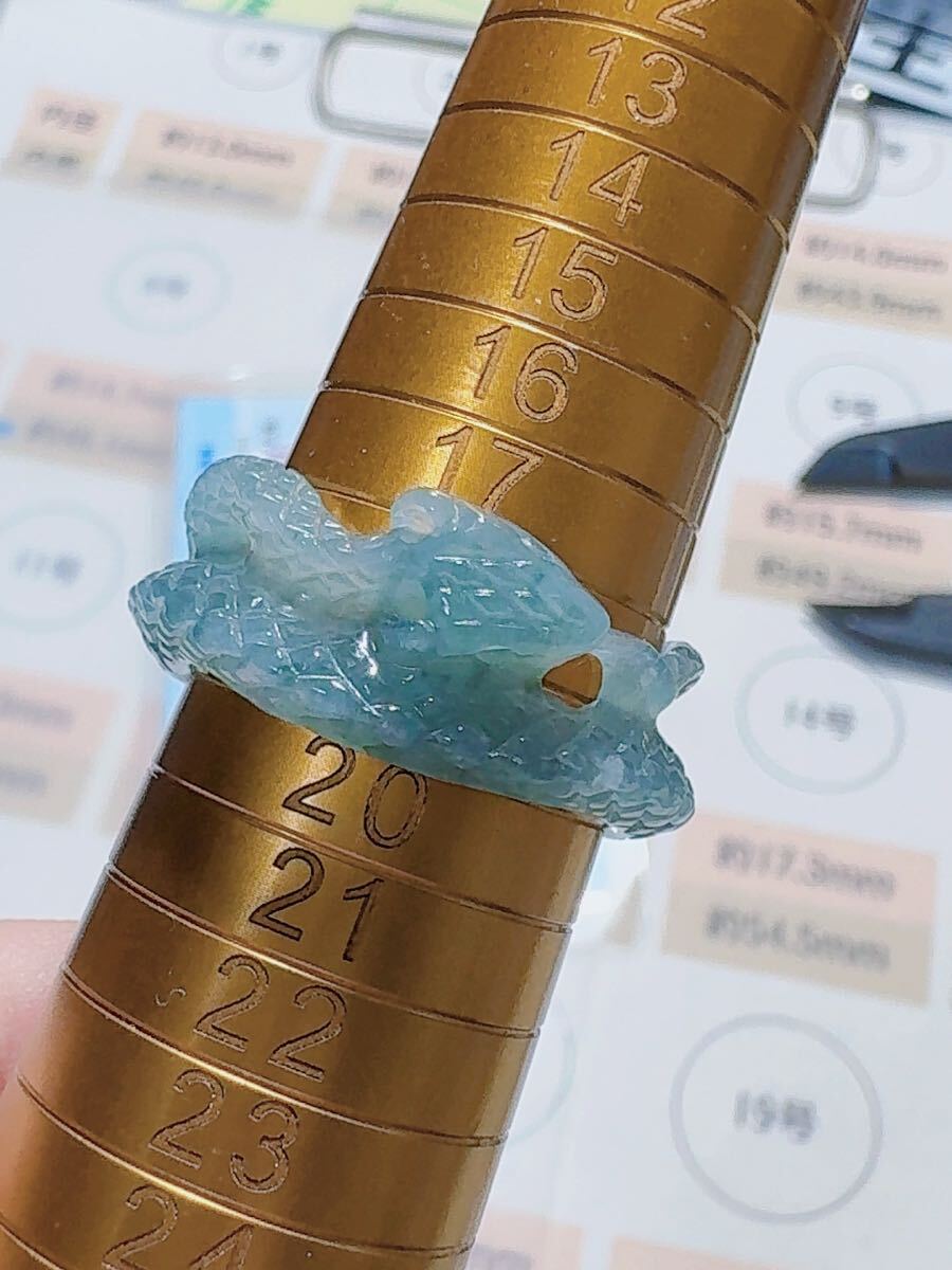 R2-02045天然本翡翠《本物保証》 藍水翡翠 ヘビちゃん指輪約18~19号 一点物 希少 縁起物 お守り 魔除け 昇進 成功 風水 金運財運幸運 幸福