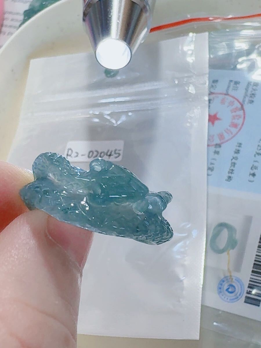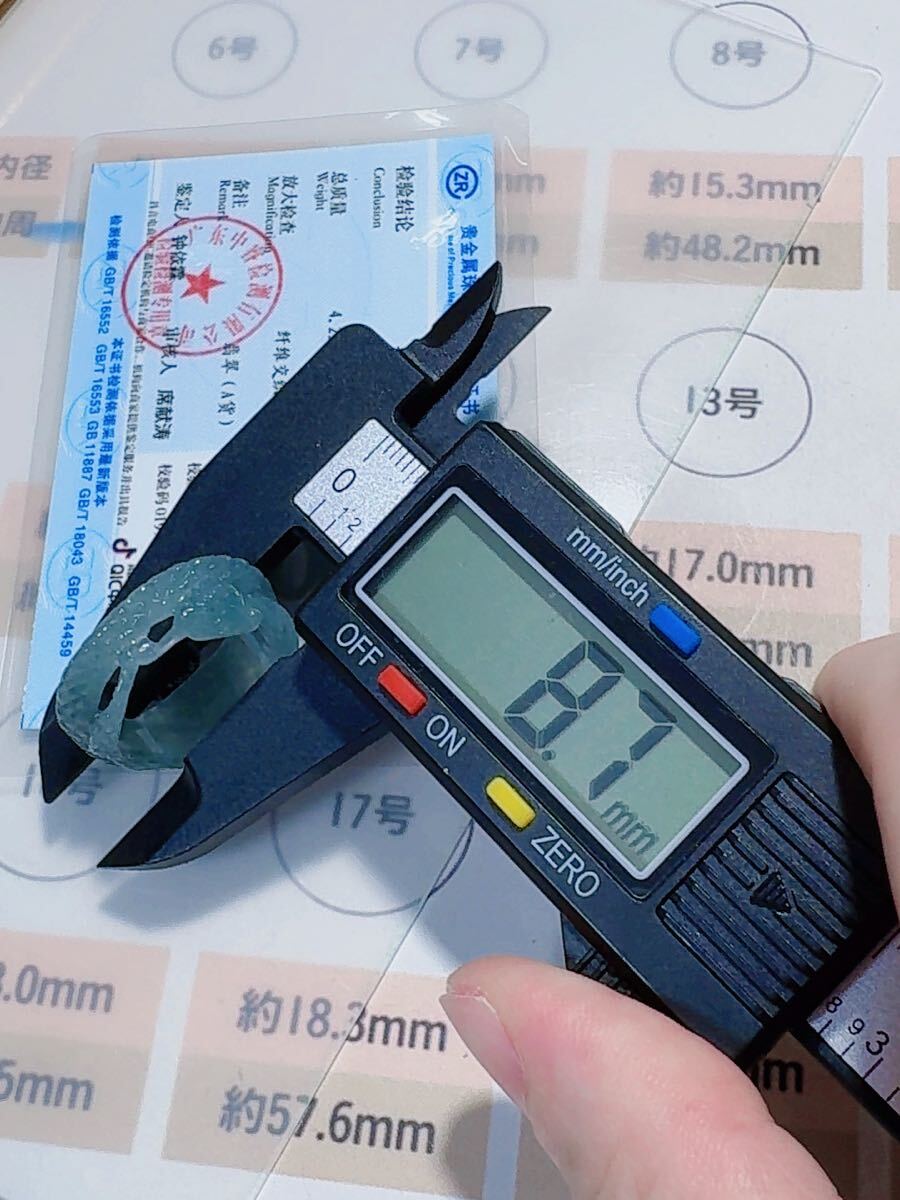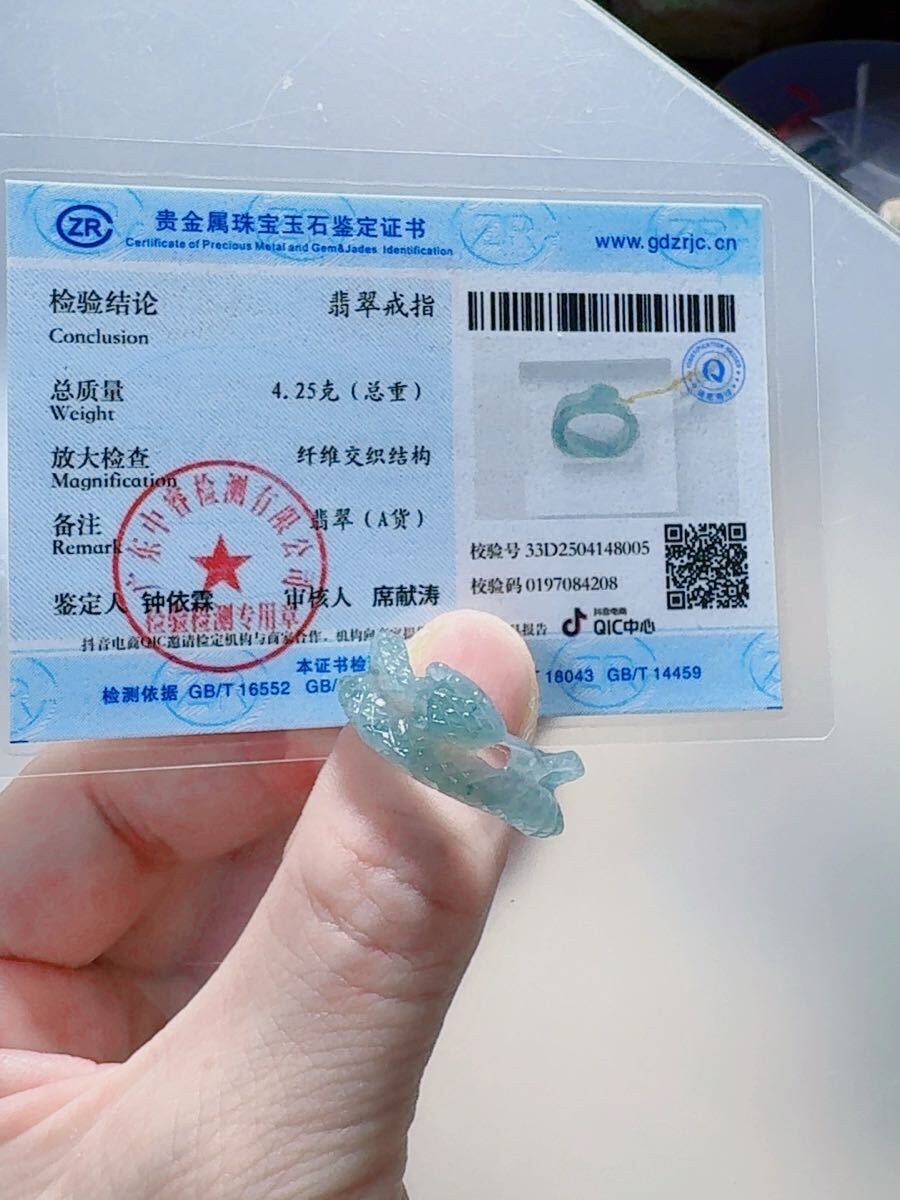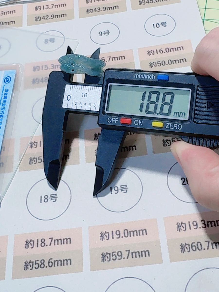 R2-02045天然本翡翠《本物保証》 藍水翡翠 ヘビちゃん指輪約18~19号 一点物 希少 縁起物 お守り 魔除け 昇進 成功 風水 金運財運幸運 幸福