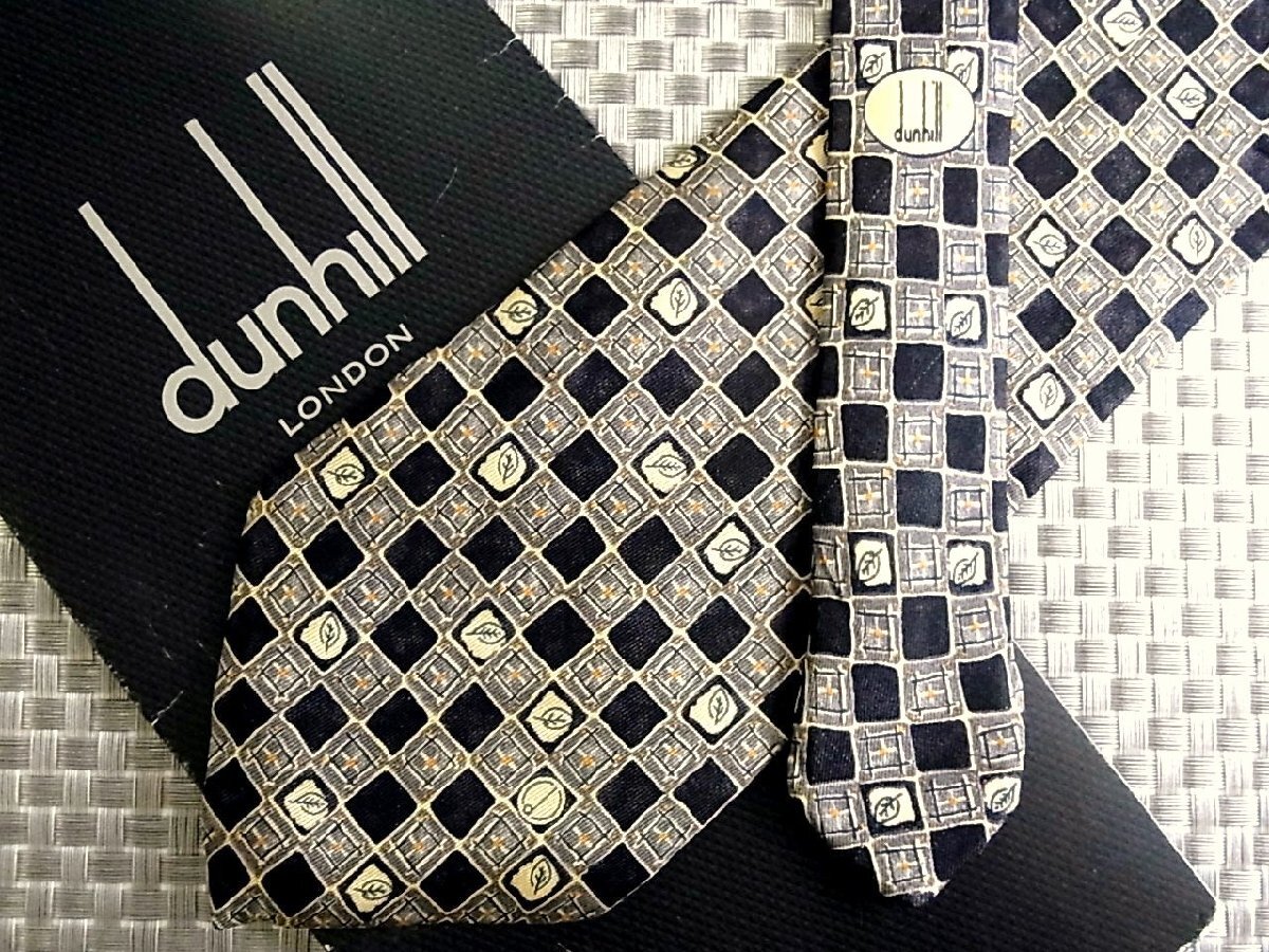 【在庫処分セール】●特売●FK9815W●ダンヒル【葉っぱ 植物 dロゴ 柄】ネクタイ●