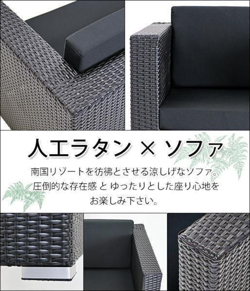 | 商品名 | 新品 人工ラタンソファ 2人掛け 黒 ラブソファ 2P 籐 家具 ファニチャー インテリア おしゃれ リビング sofa ソファー 椅子 チェア 南国 アジアン バリ風 リゾート ホテル ベランダ バルコニー テラス 庭 ガーデン ラタンチェア 2seater ブラック rattan642pbk |