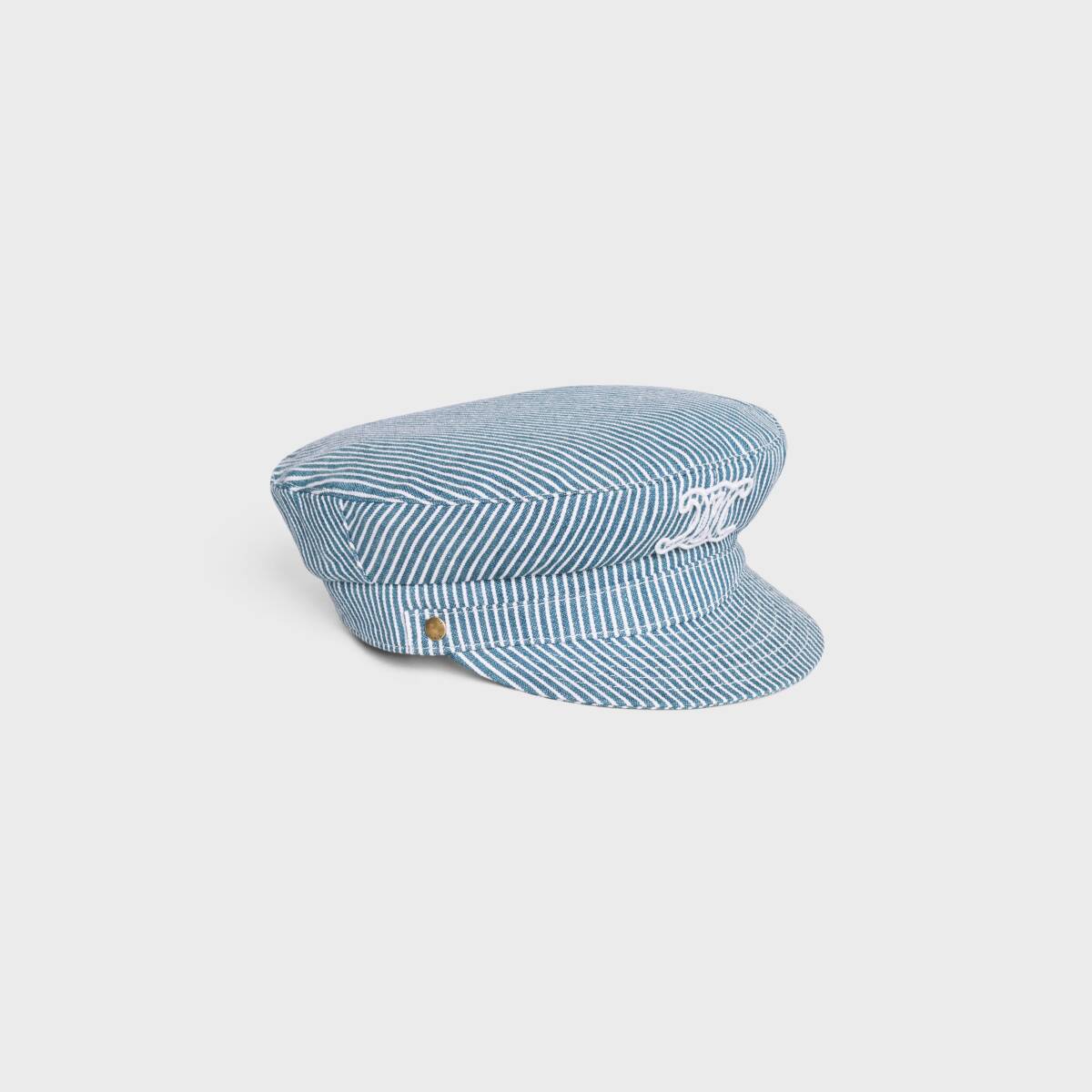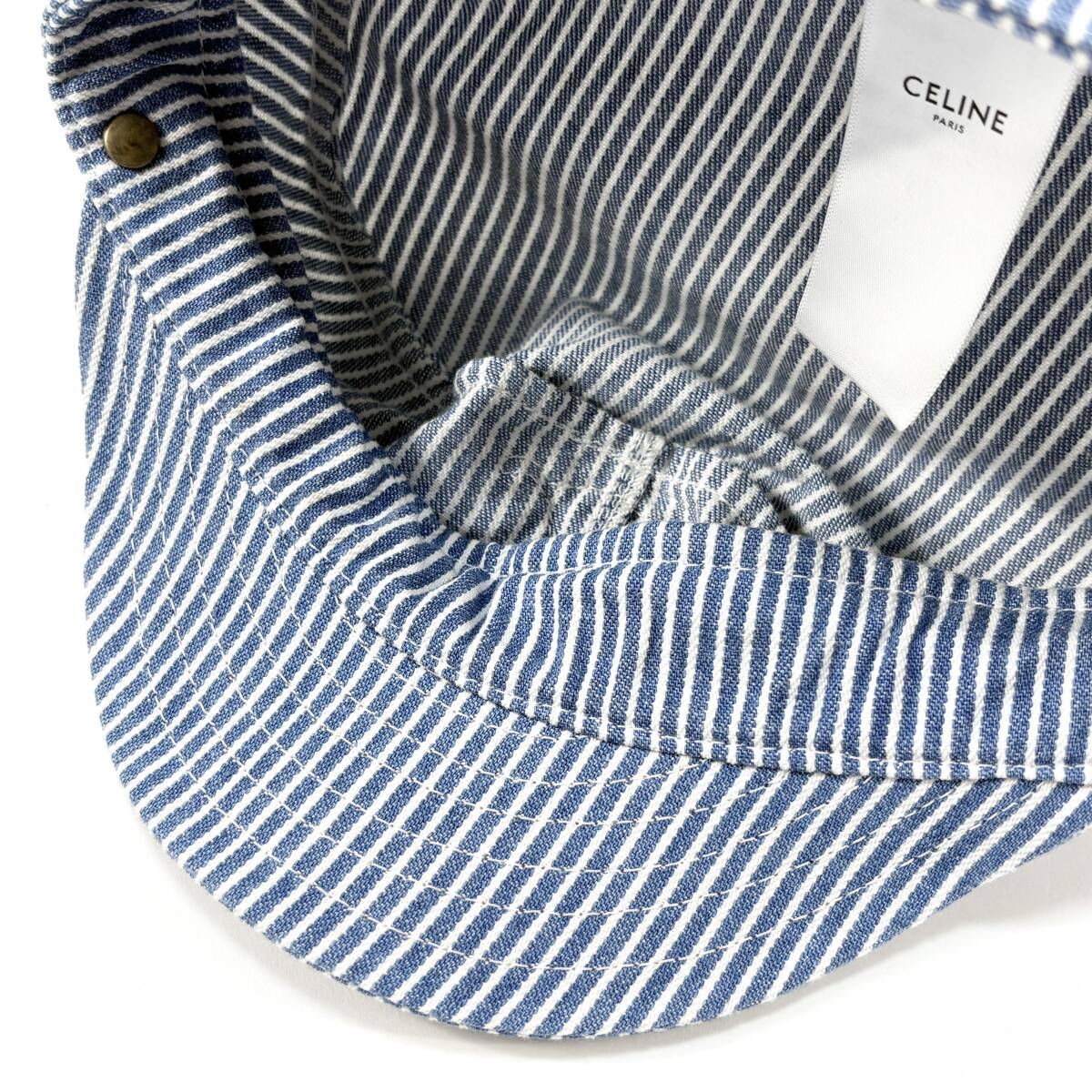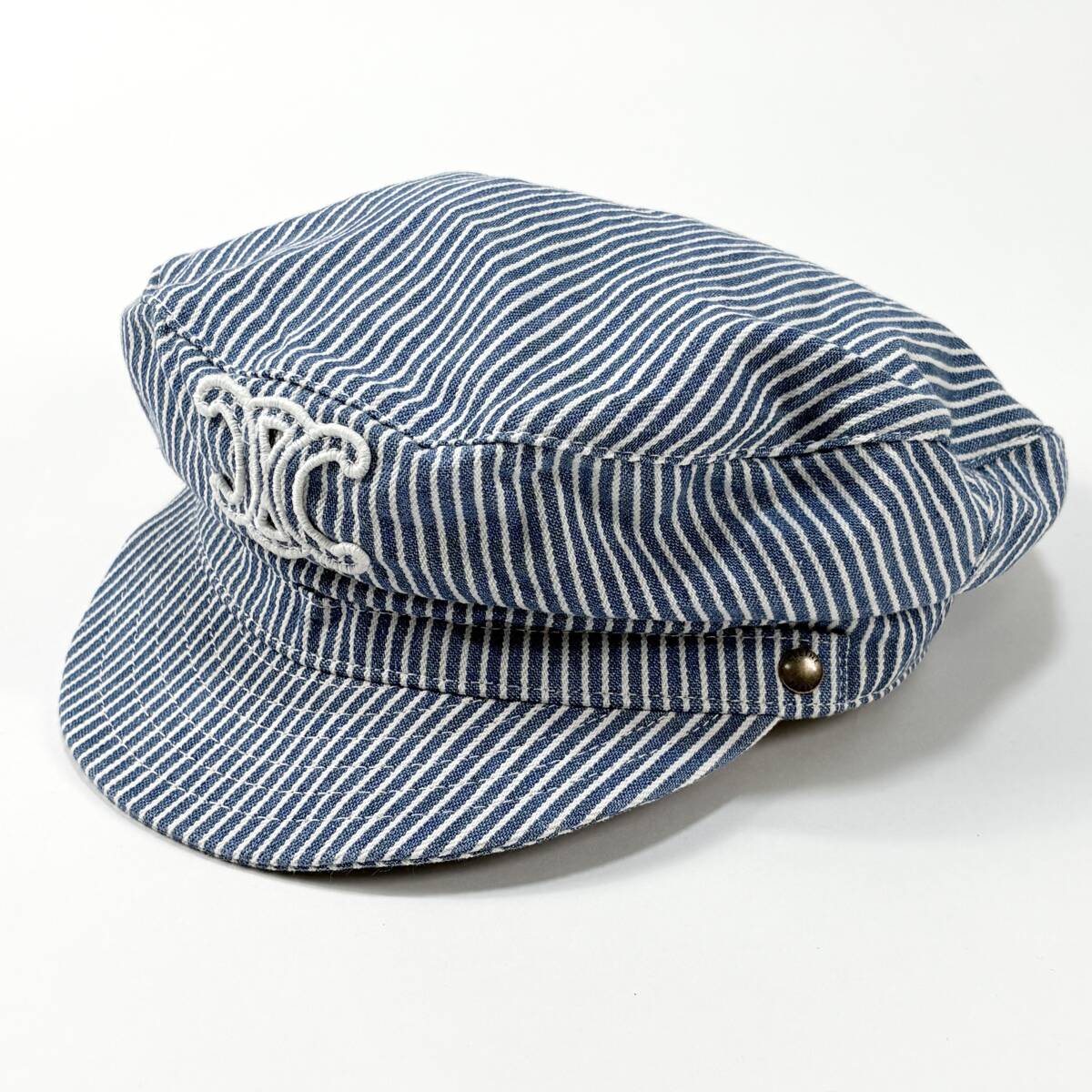美品 CELINE by Hedi Slimane 24SS トリオンフ セーラーキャップ コットンヒッコリー ウェーブウォッシュ 2AUG1296V.08WV L マリン SSM6216