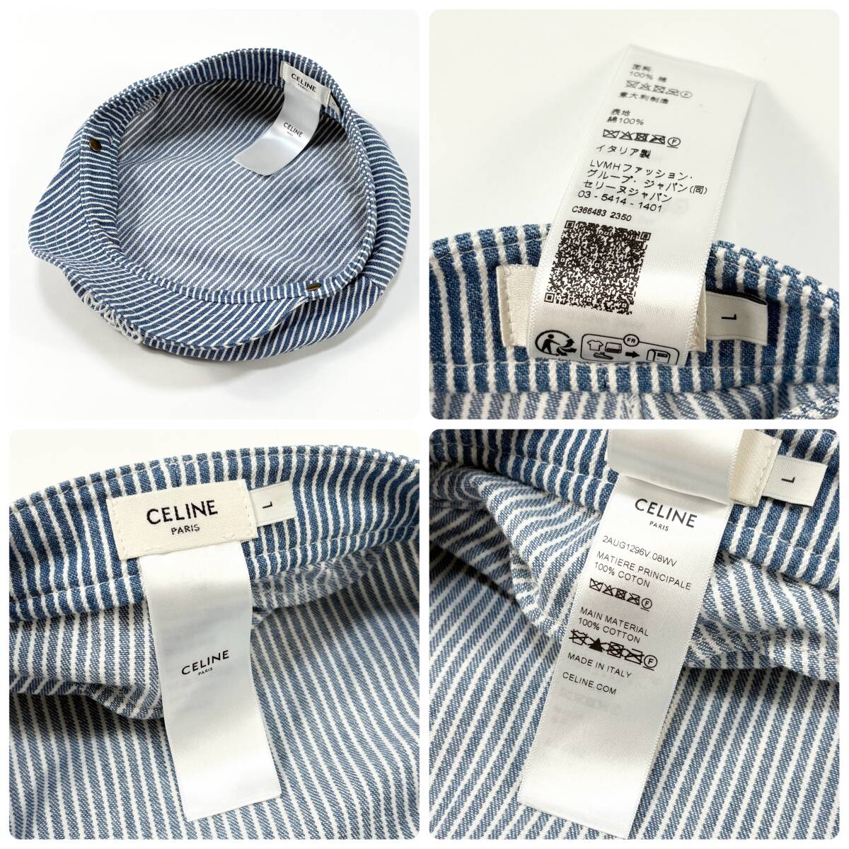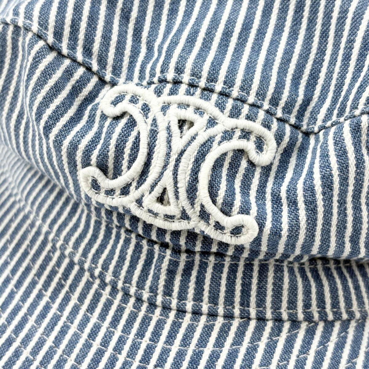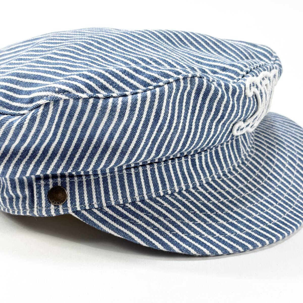 美品 CELINE by Hedi Slimane 24SS トリオンフ セーラーキャップ コットンヒッコリー ウェーブウォッシュ 2AUG1296V.08WV L マリン SSM6216