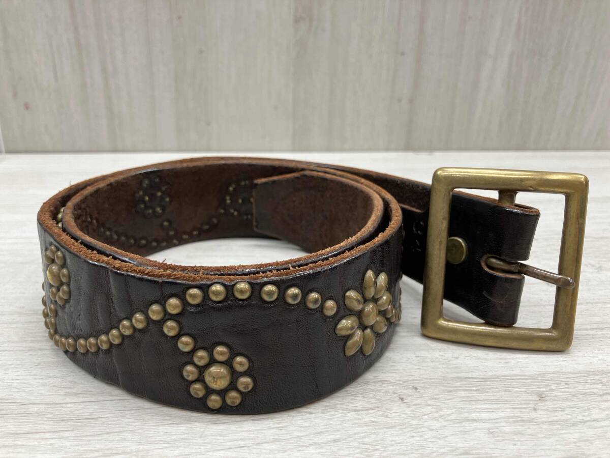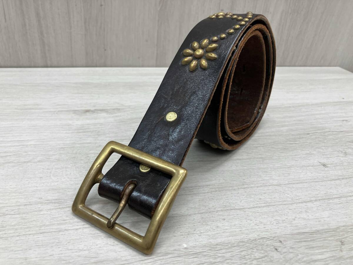 | HTC/フラワースタッズレザーベルト サイズ34/長さ約98cm ブラウン 使用感あり サイズ実寸の為、異なる場合ありますが、予めご了承下さい |