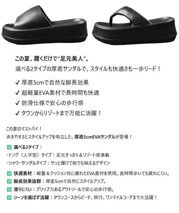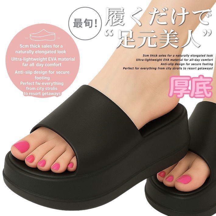 歩きやすさとスタイルアップを両立した、厚底5cmEVAサンダルが登場!