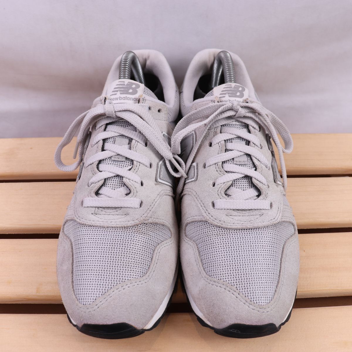 z1915【373】ニューバランス US7.5 25.5cm/灰 ライトグレー 白 ホワイト newbalance メンズ スニーカー 中古