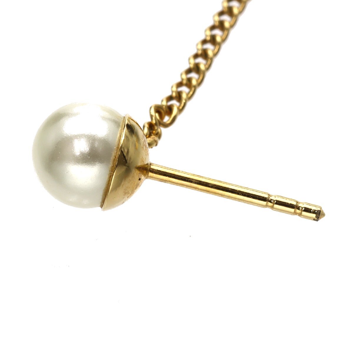Christian Dior クリスチャンディオール フェイクパール チェーン ゴールド ピアス■22C09