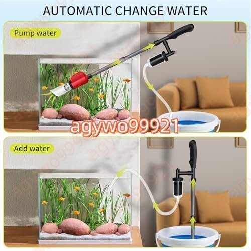 使いやすさ:当社の電動水槽クリーニングキットは、従来の水槽掃除機よりも使いやすくなっています。使用時は、ハンドルを握ってスイッチを押すと、水が自動的にホースに吸い込まれ、手動操作に比べて90%の時間を節約できます。(注:外部独立スイッチは防水ではありません。水に近づけないでください。)