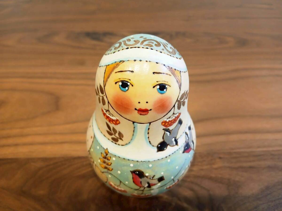 母親のナジェージダ・イワンツォワさんは人生のすべてをマトリョーシカに捧げている大作家さんです。マトリョーシカの描画技術の伝道のため19歳で南米に渡り、その後は世界中の美術館やコレクション博物館などで彼女の作品は展示され始め、認知されました。ロシア・マトリョーシカ誕生の初期の頃の伝統的なデザインを守るスタイルで、この才能と技術は娘のリュボーフィ・ブズィキナさんに継承され、世界中で人気を博しています。贋作も多く、注意が呼びかけられています。