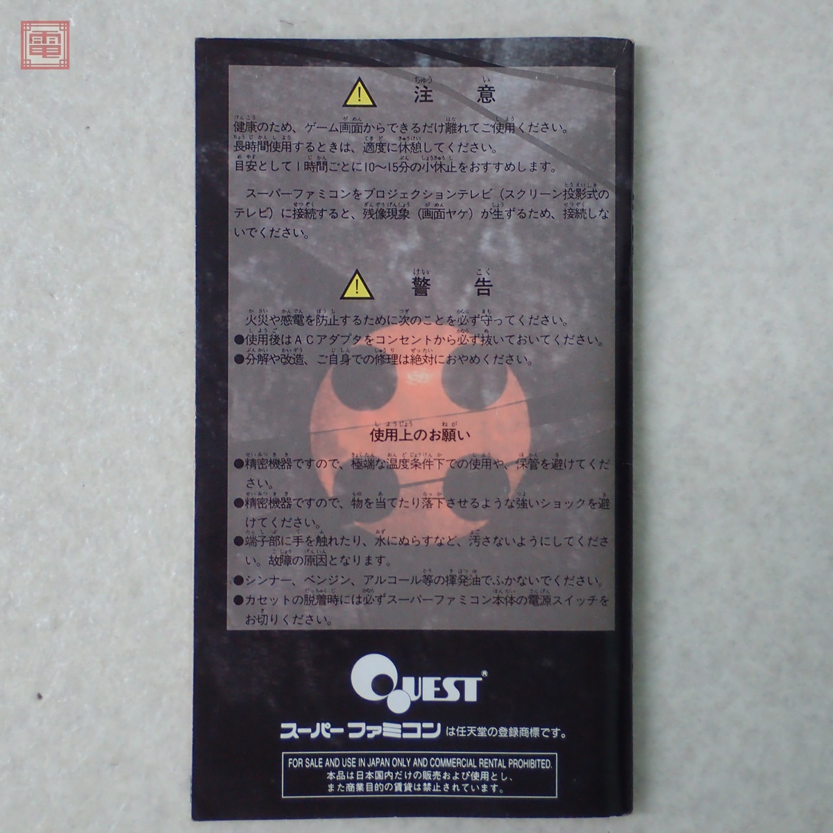 動作保証品 SFC スーパーファミコン タクティクス オウガ クエスト QUEST 箱説付 こちらの商品は動作保証品となりますので、一週間の動作保証をお付けします。 ■スレ、キズ、汚れ、イタミ、ヤケなどがあります。 ■画像、記載以外のダメージがある可能性があります。予めご了承ください。 ■写真のものが全てです。付属物の有無や状態については写真からご判断ください。 ■チェックに使用したモニターやチェック機器等は、特に表記がない限りは付属いたしません。 ■商品到着後、当店の保証期間中は、商品及び箱や取説、付属品などを1つでも廃棄や破損をしないようにお願い致します。廃棄や破損をした場合、商品に問題があった場合でも対応や返金などの対処ができなくなります。 | |||