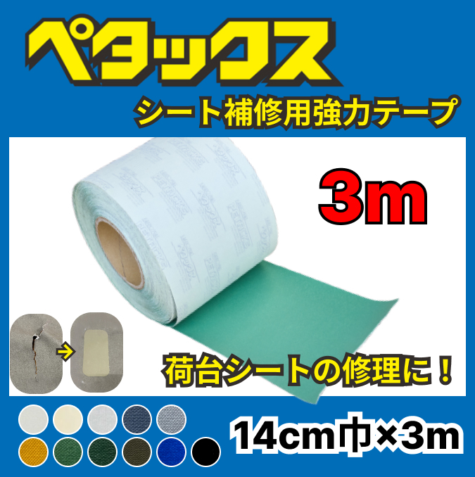 補修テープ 【ペタックス】14cm巾×3m 切り売り 荷台シート トラックシートの修理に!
