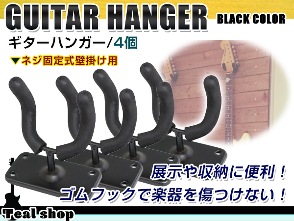 耐久性抜群! 壁掛け ギター ハンガー フック スタンド ディスプレイ ネジ 取付け ベース・エレキ・アコギ・ガットギター可!4個