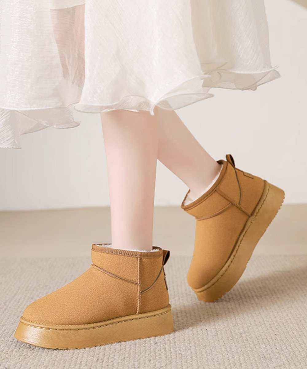 秋冬の定番靴、シンプルなデザインで着る服を選ばない無地のムートンブーツ