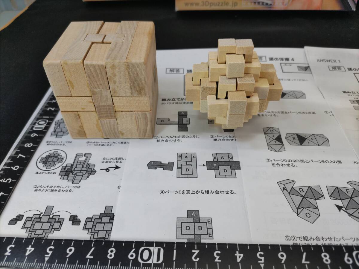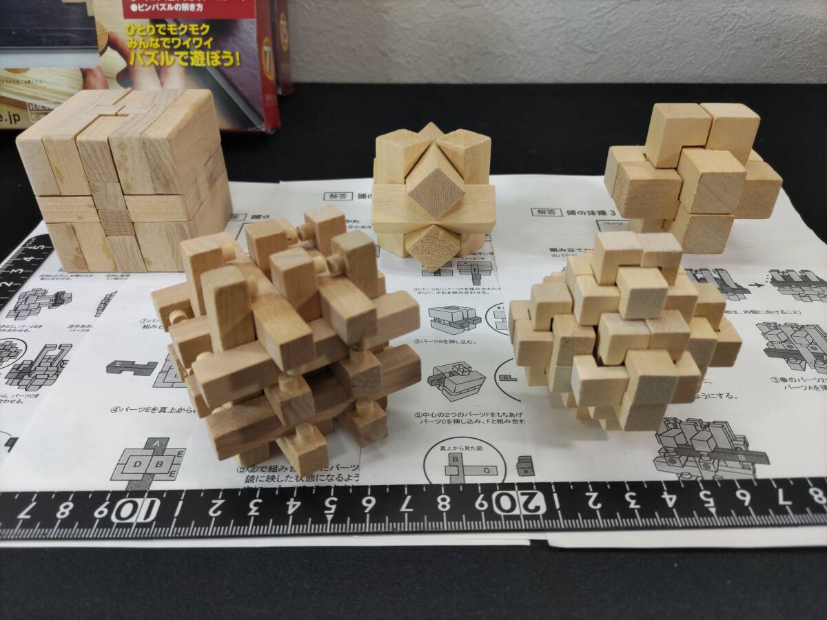 ★ 美しい白木の立体パズル5点(説明・解説有り)