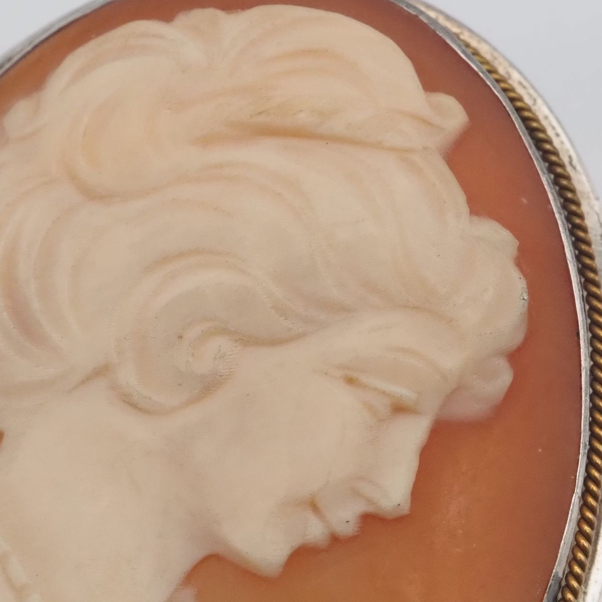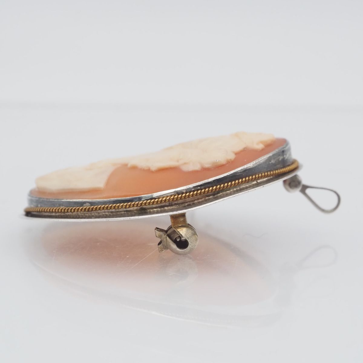 F253 シェルカメオ 800刻印 ブローチ 女性横顔 デザイン シルバー ヴィンテージ