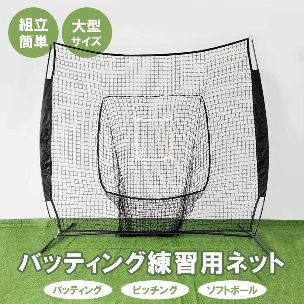 こちらの商品はバッティング練習用ネット(大型)です。 【簡単組み立て、専用バッグで持ち運べる】 バッティング強化に役立つ練習用ネット 簡単に組み立てられ、専用のバッグに入れて持ち運びできるバッティング練習用のネットです。スペースがあれば屋内にも設置して雨風を気にせず練習できます。バッティング、ピッチングなどの練習にもオススメです。 【軟式から硬式まで対応】 硬式ボール対応の頑丈設計 強固な三角構造のため衝撃に強い設計です。硬式ボールでもストレスなく練習できます。 【コントロールが不安定でも安心】 幅広く打球をカバーするゆったり大きめサイズ ネットエリアはおよそ250×212cmと大きめで、多少の打ち損じがあっても安心のサイズです。 【目標を狙いやすい】 ターゲットエリア付き ネットの中央部分には約60×40cmサイズで白枠のターゲットエリアが付いています。打球の的として目標を定めやすく、固定されているため打球によって取れてしまう心配もなく練習できます。 ■サイズ:組立時:約 幅250cmx奥行き107cmx高さ212cm 収納時:約幅118cmx奥行き14cmx高さ14cm ■材質:フレーム:スチール、グラスファイバー(縦フレーム) ネット:ポリエステル ■重量:約5.2kg ※組み立ては二人以上で行ってください。 ※こちらの商品は大型サイズです。 | ||