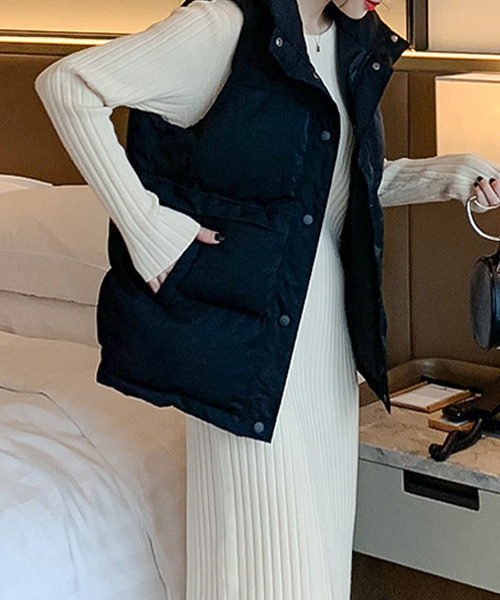 参考商品名:オーバーサイズ ユニセックス ハイネック中綿ダウンベスト culw261