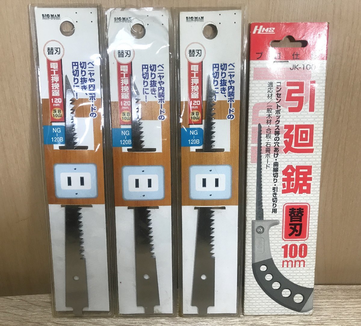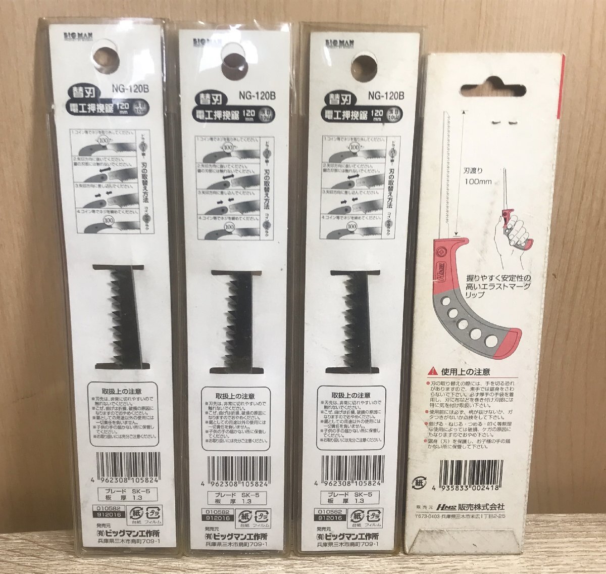【未使用】BIG MAN ビッグマン工作所 替刃 電工押挽鋸 120㎜ 茨目10山 NG-120B 3個/HMS 引廻鋸 替刃100㎜ JK-100 1個 まとめ4個