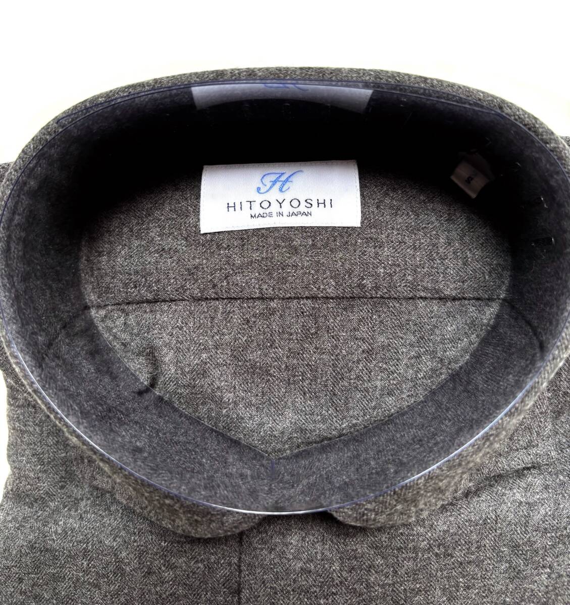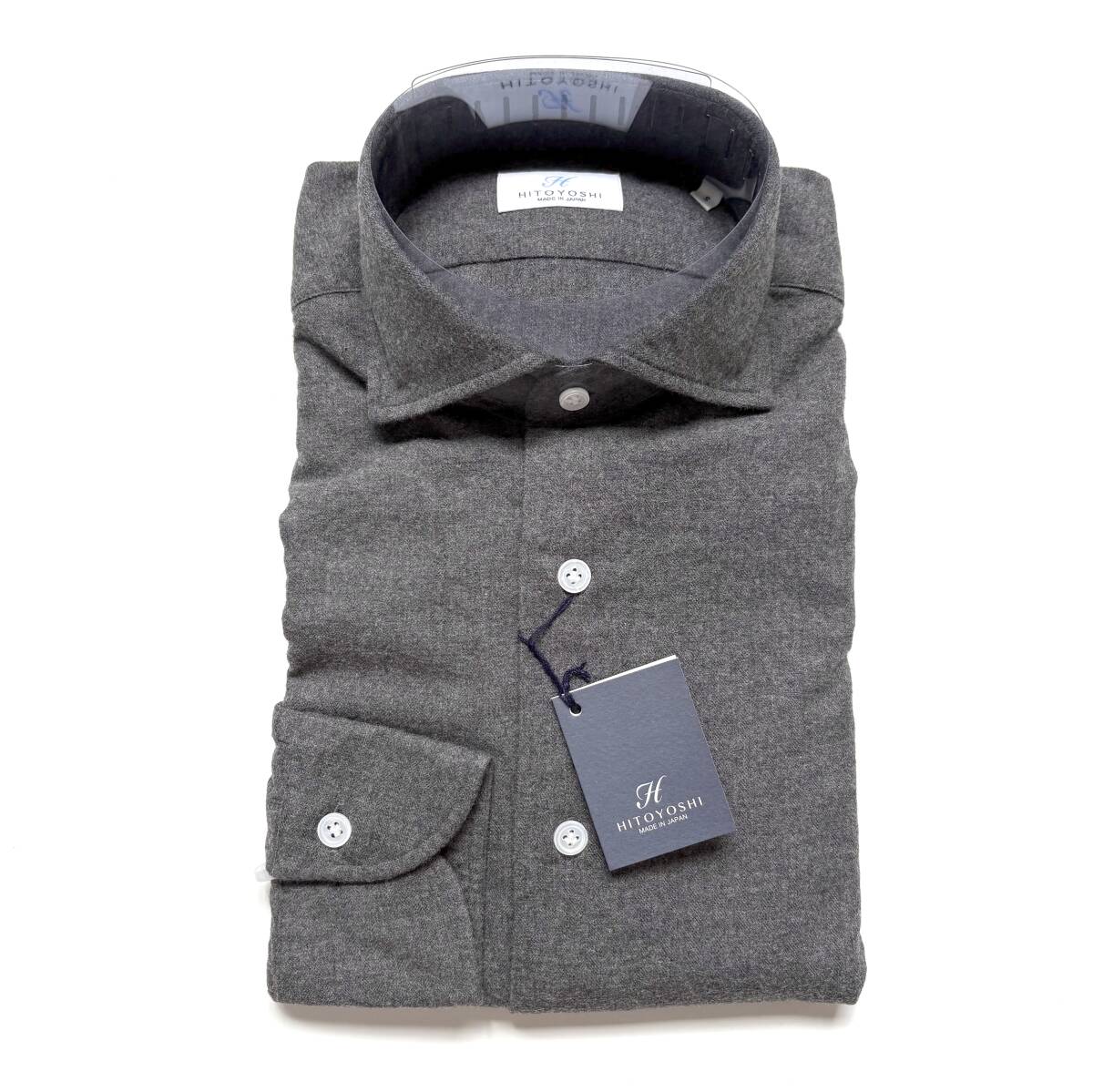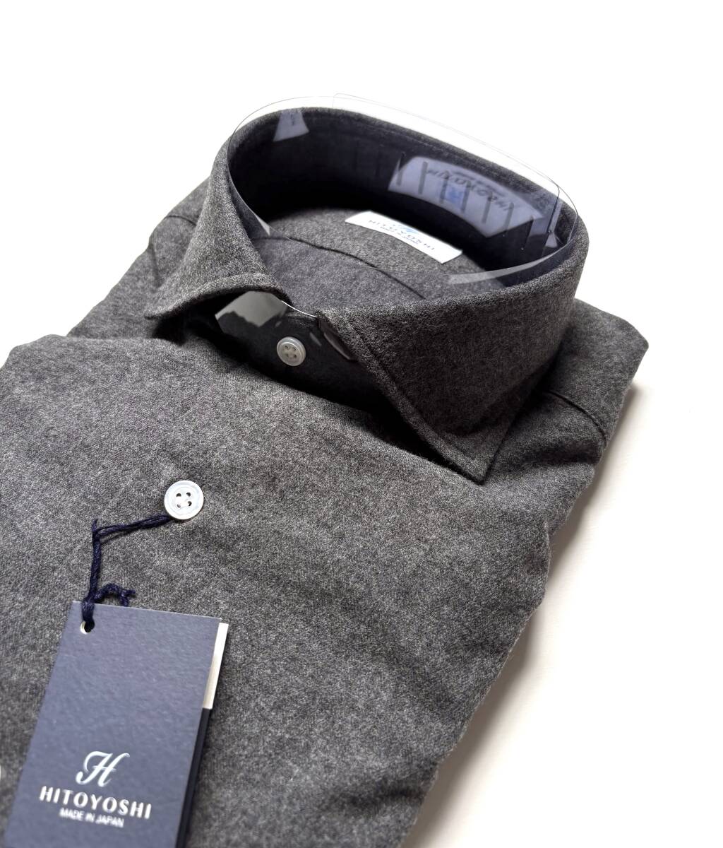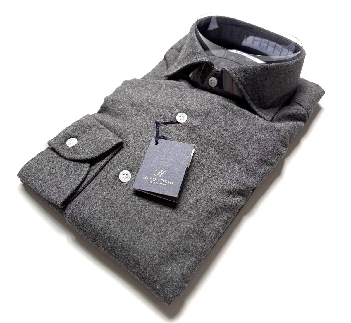 新品 HITOYOSHI S 37cm ヒトヨシ 長袖シャツ 長袖 シャツ ワイドカラー チャコールグレー コットン 綿100% 日本製 百貨店購入 2