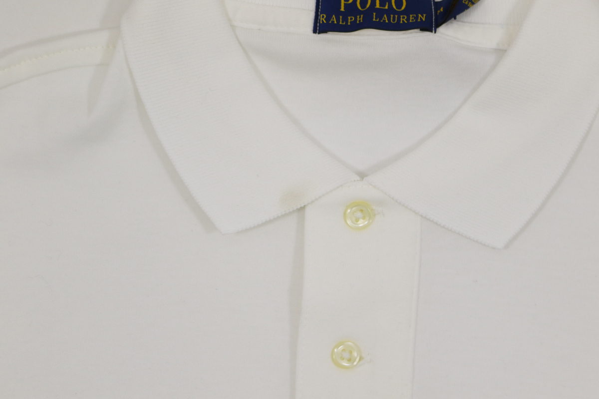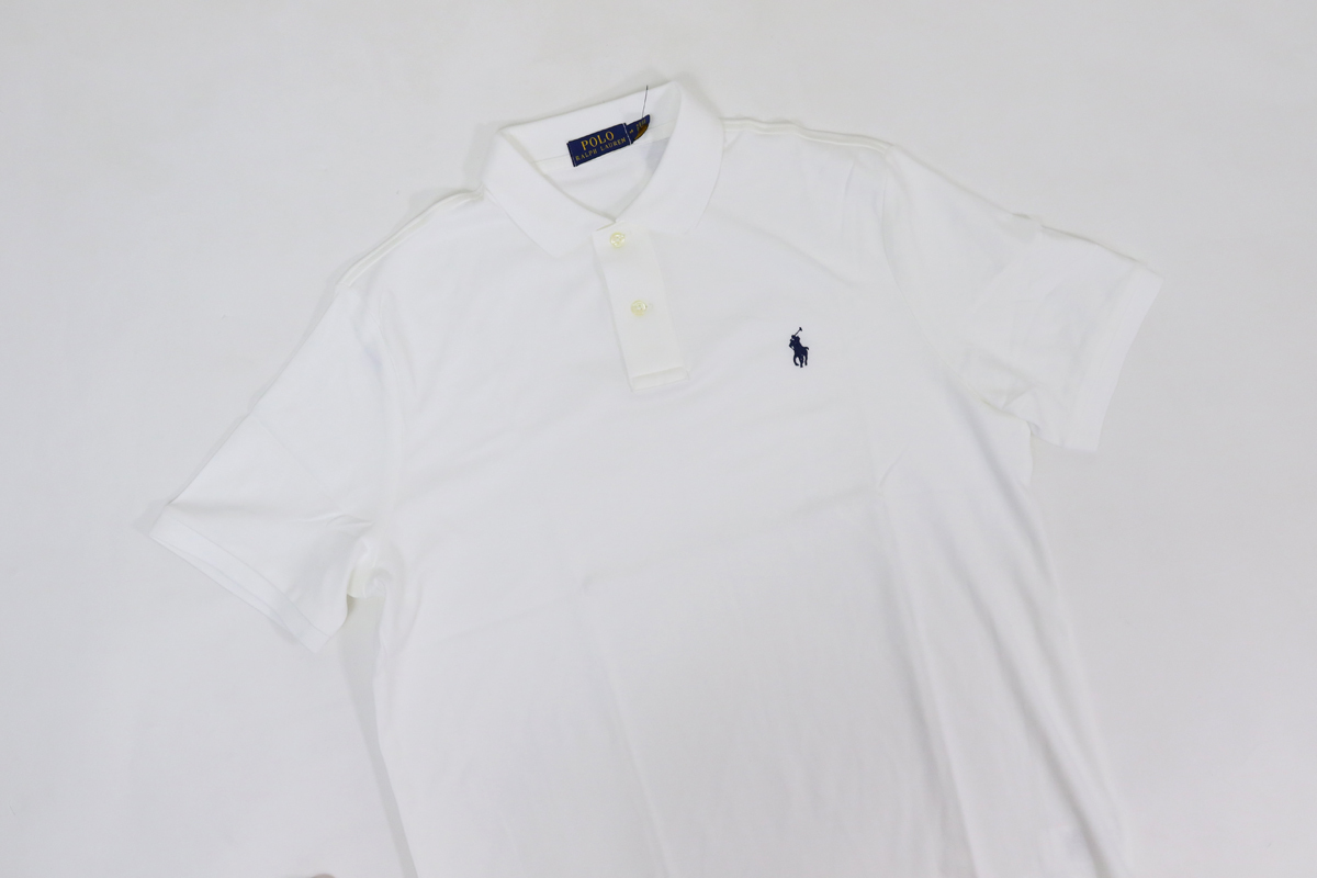 アクセス頂きありがとうございます。 こちらはアメリカ買付新品アウトレット ラルフローレンRalph Laurenのポロシャツです。 やや余裕のあるシルエットの肌触りの柔らかいコットンジャージのボディ。 2つボタン、リブカラー、左胸にワンポイントのポニー刺繍。 生産国/ MADE IN SRI LANKA 素材/ 100% COTTON EXCLUSIVE OF DECORATION (US) M 着丈 (cm) 77 身幅 (cm) 57 肩幅 (cm) 47.5 そで丈 (cm) 24 *着丈:背面襟元中央~裾まで直線、身幅: 脇下~脇下まで直線、 肩幅: 肩先~肩先まで直線、袖丈:肩先~袖口まで直線、 裄丈:背面襟元中央~肩を通って袖口まで *サイズは慎重に計測しておりますが、計測方法や商品の材質、 個体差で誤差が出ることがございますのでご了承ください。 アウトレット理由 前立てに汚れがあります。 0105915 その他、多数出品しております。 こちらもご覧下さい |
