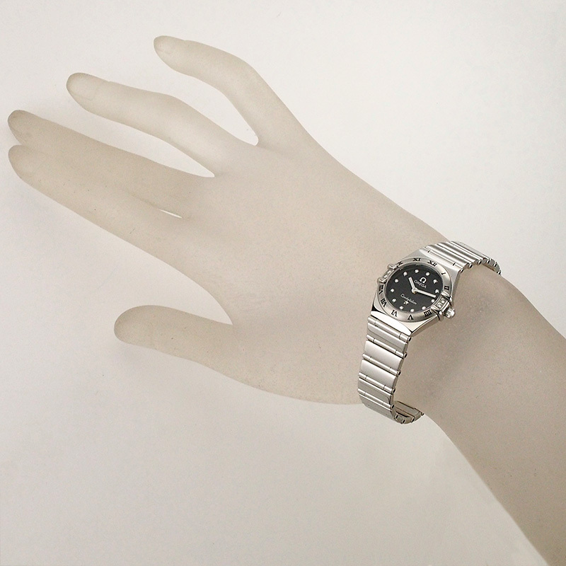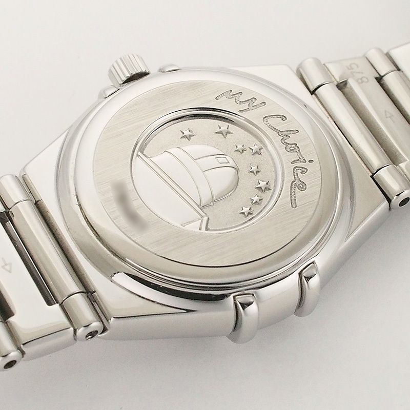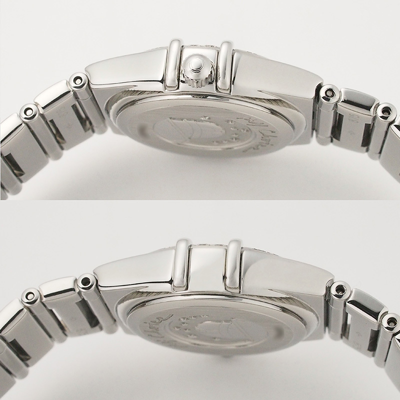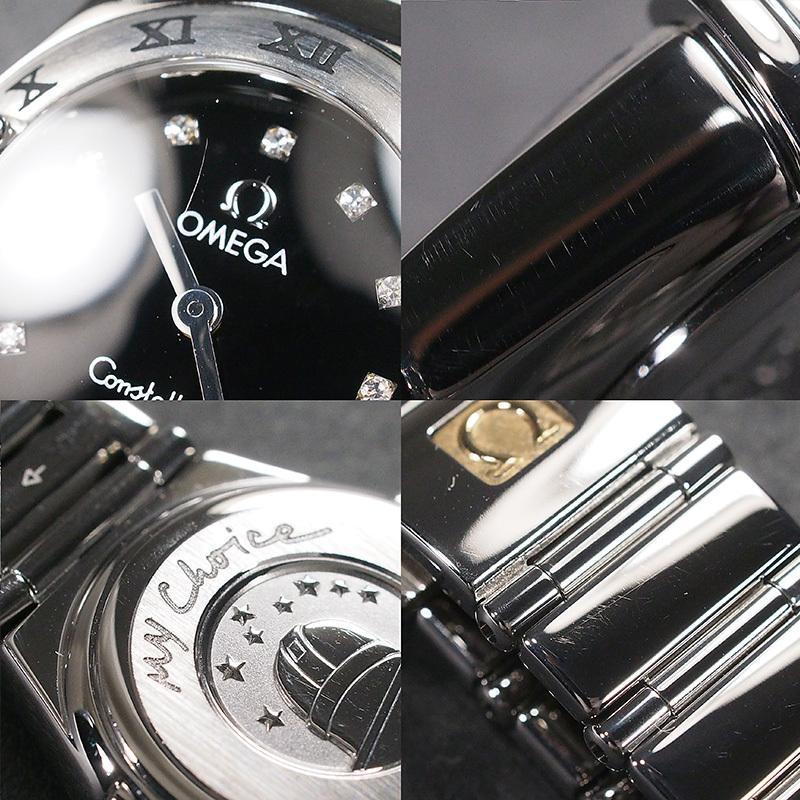 備考:6ヶ月保証付き。ベゼルを掴む4本の爪が特徴の、星座を意味する「コンステレーション」。ベゼルと文字盤に贅沢にセッティングされたダイヤモンドが、光を受けるたびに繊細で眩い輝きを放ちます。風防に小傷、ケース・裏蓋・バンドに小スレが残っておりますが、こちらは仕上済商品の為、状態の良いお品でございます。