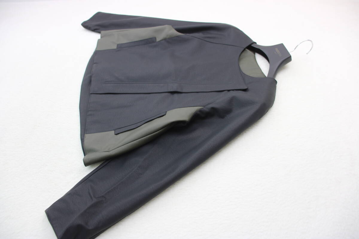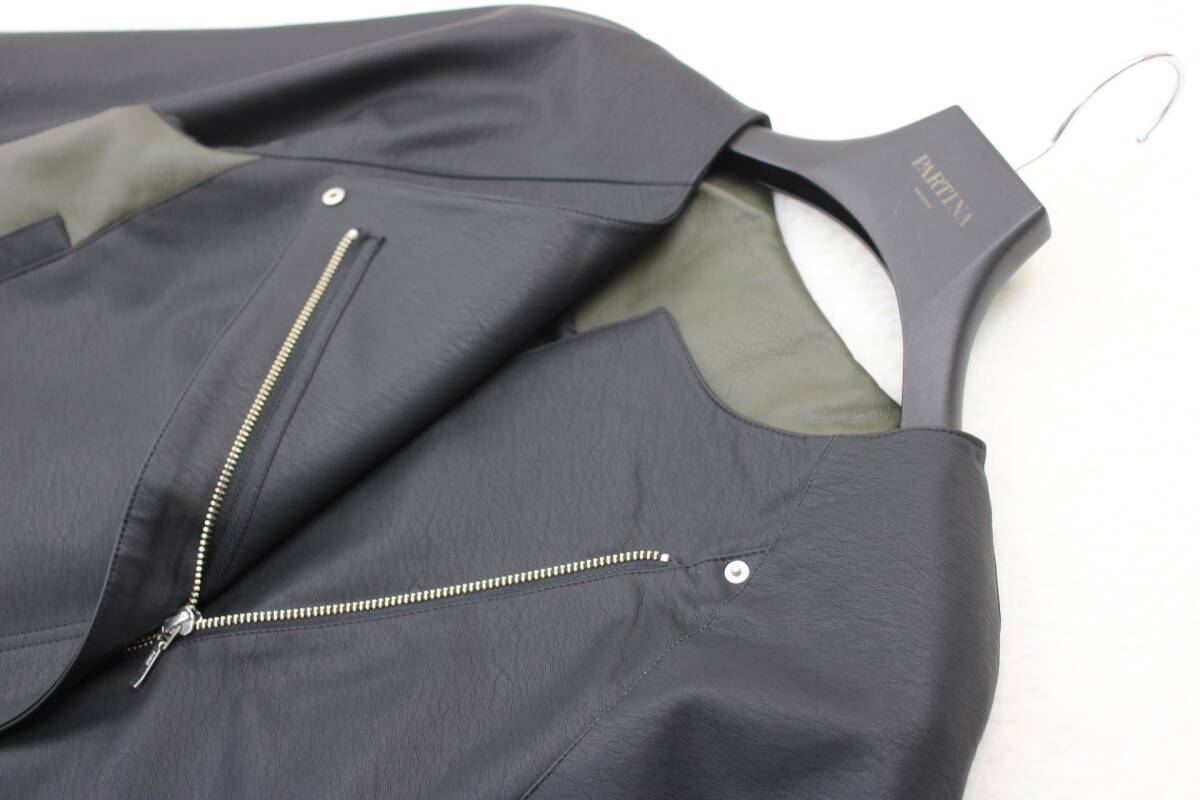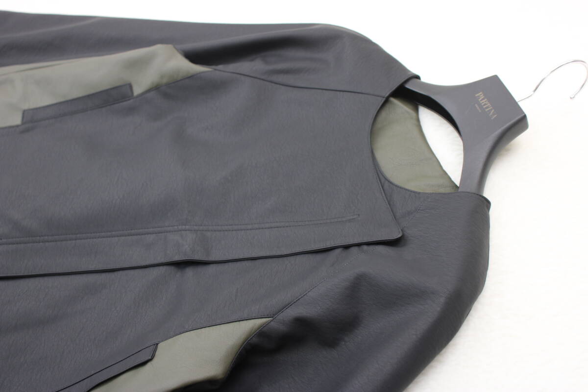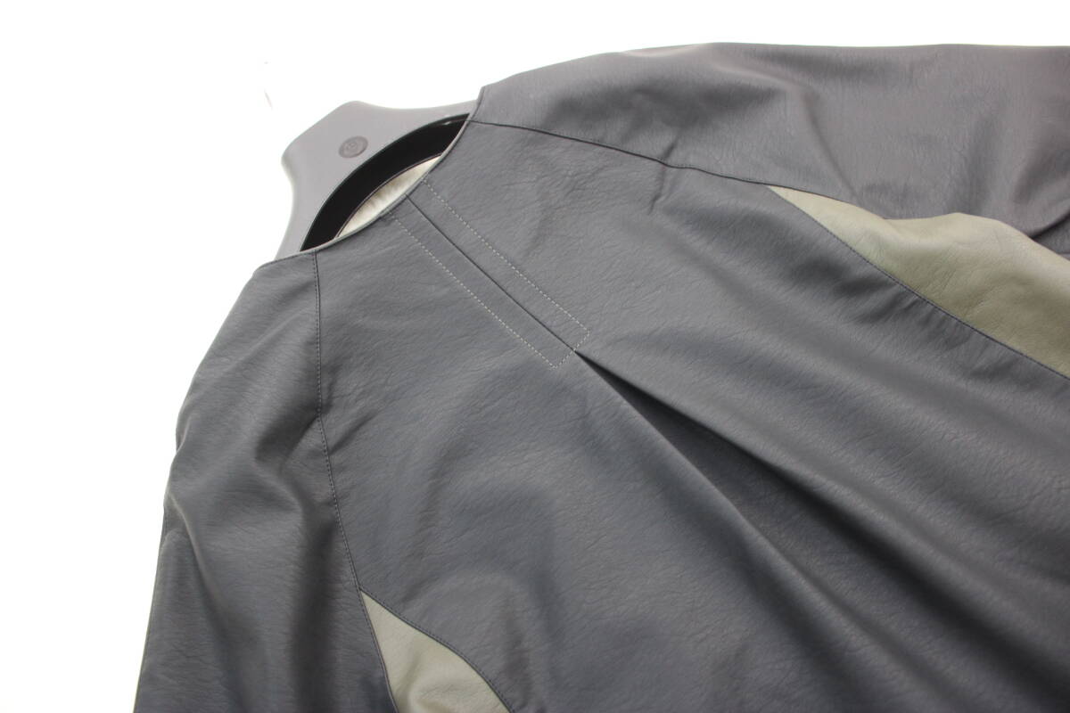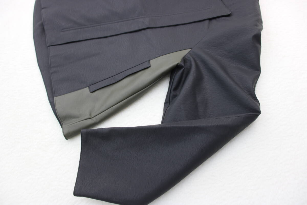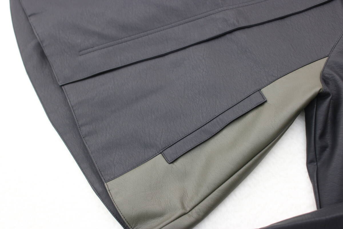 4546 新品 配色切替フェイクレザージャケット ブラックFサイズ