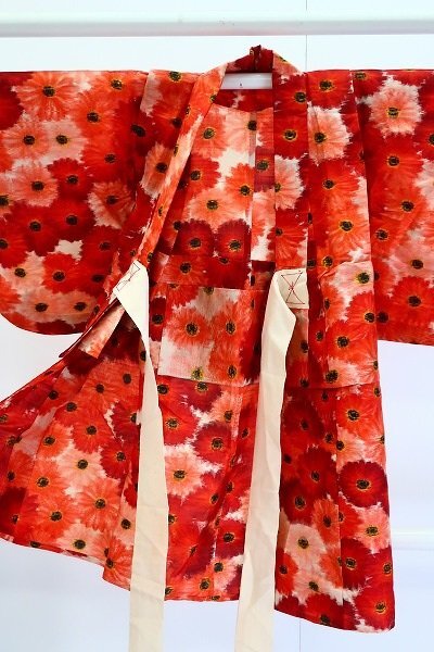 美品 アンティーク 子ども 銘仙 身丈90.5cm 赤系 お洒落 大正ロマン レトロ 仕立て上がり 正絹 kimono 着物フィ 19128 |