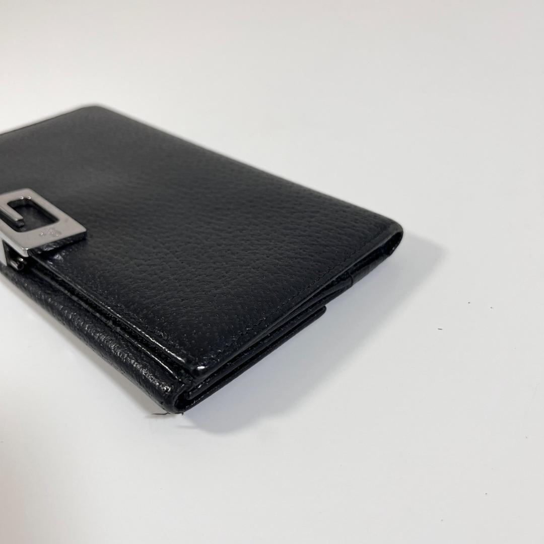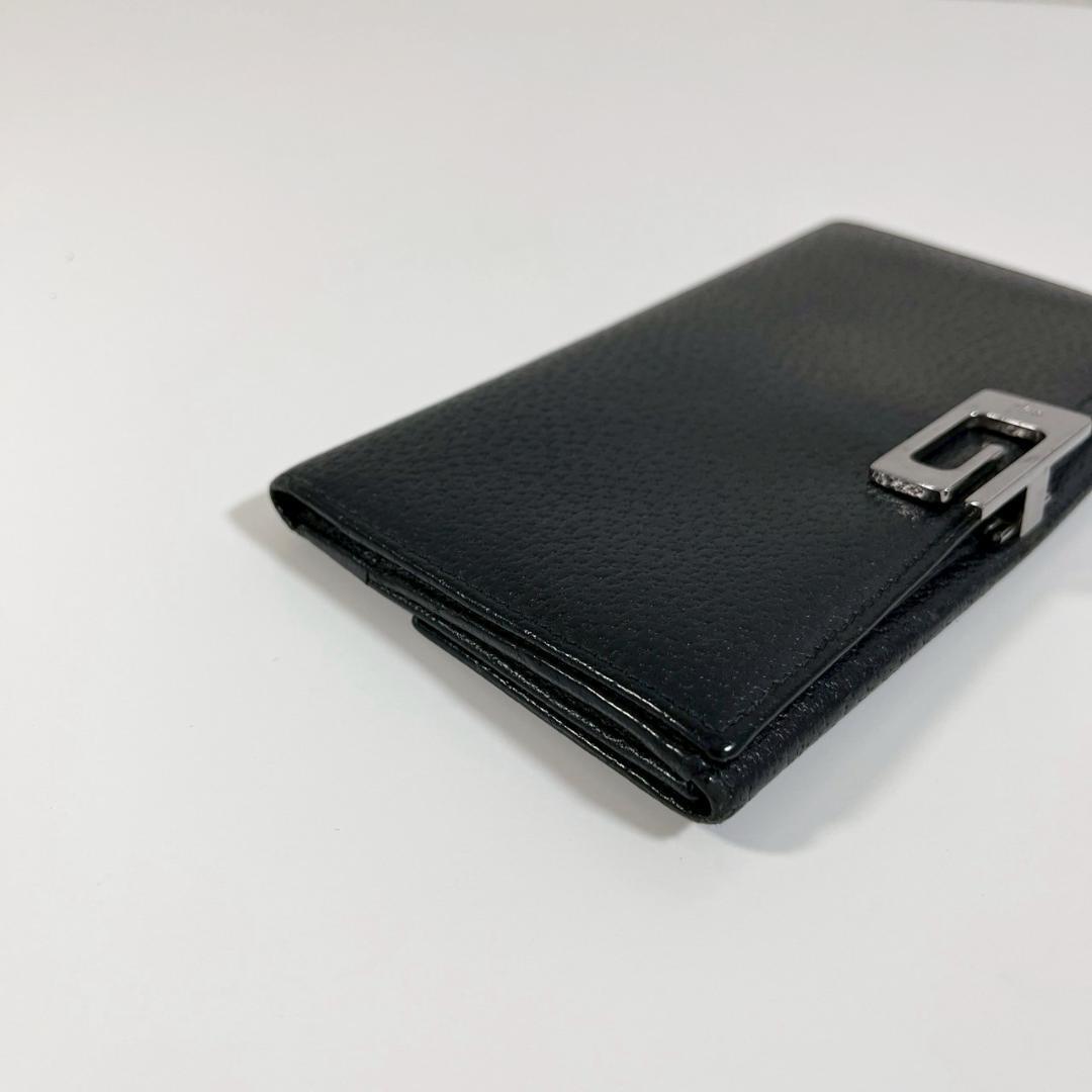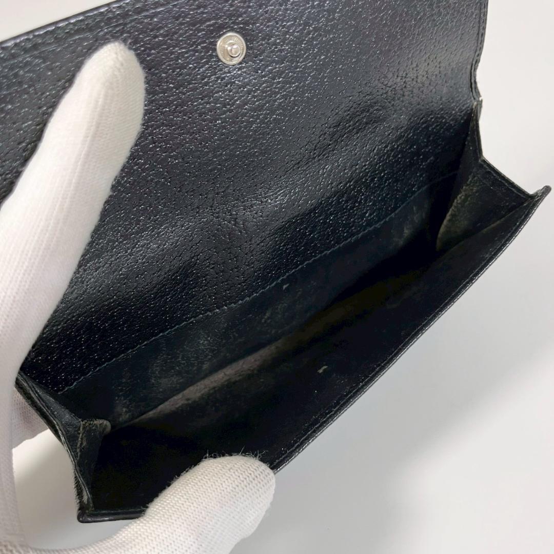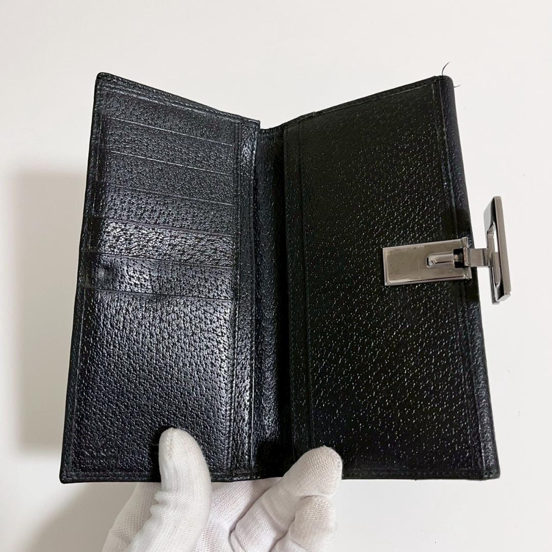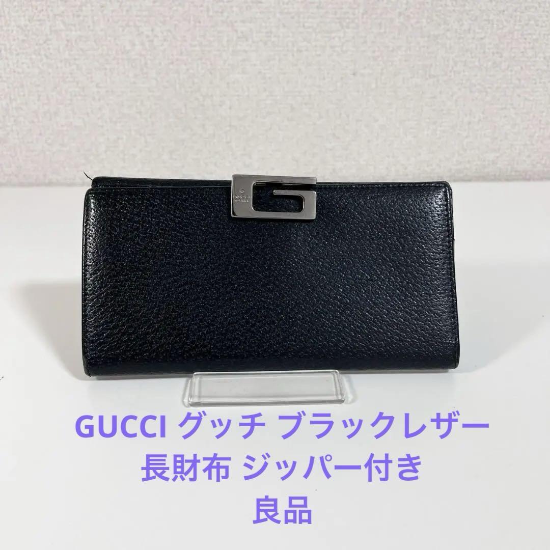 シンプルなデザインのブラックレザー長財布、ジッパー付きで機能的。