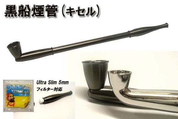 送料180円~新品 約2倍の特大火皿!シャグに相性抜群(5mmフィルター対応)黒船煙管(キセル)16,8cm(ネジ込全パーツ分解可)黒Ni日本製おまけ付