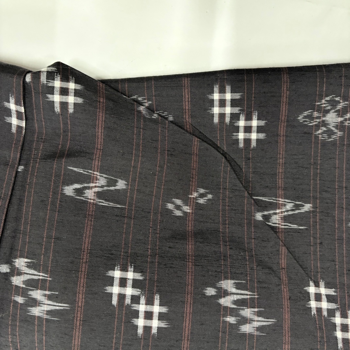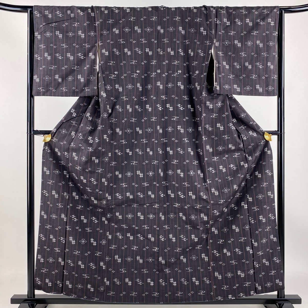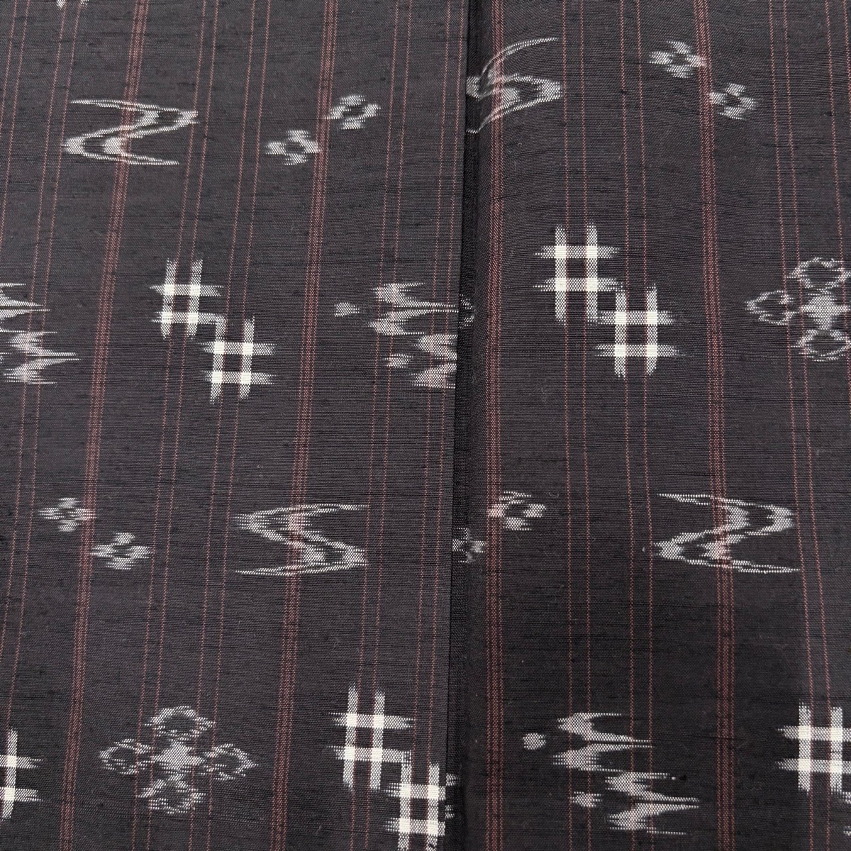 | 紬 名品 やまと 井桁絣 縦縞 茶紫 袷 身丈158 裄丈65 M 正絹 【中古】 |