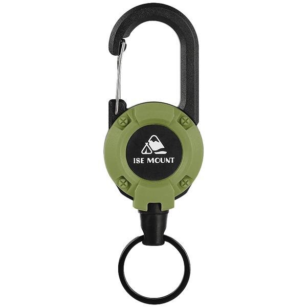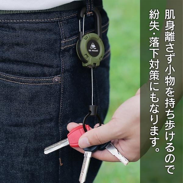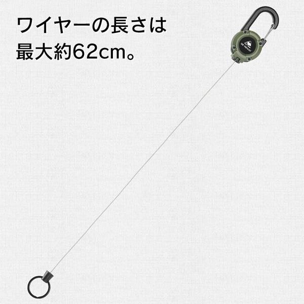 キーホルダー カラビナ 伸縮式 リュック ベルトループ 取付け 紛失 落下防止 釣り 登山 送料無料 50K◇ ワイヤー式キーホルダー:カーキ