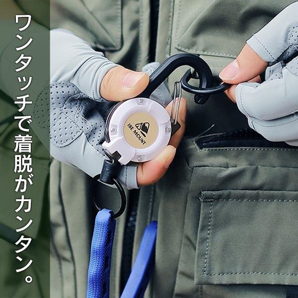 ワンタッチでリュックや鞄、ベルトループなどに取り付けられます。