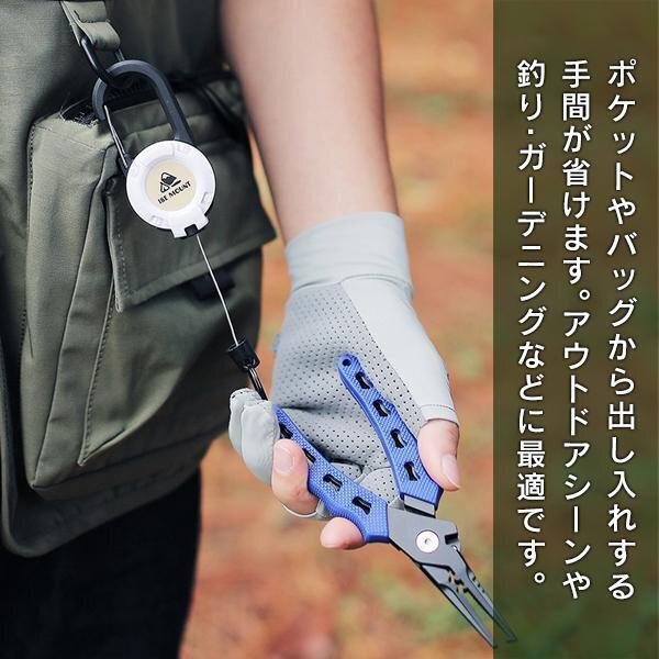 釣りのシーンであれば、小型のラインカッターなどの道具がすぐに使えます。