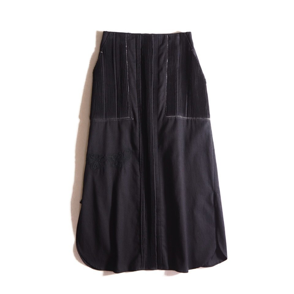 R2352f27 ▼Pheeta フィータ▼ Luisa ルイーズ コットン 切替 ロングスカート ブラック 2 / ピンタック 刺繍 ユナイテッドアローズ 春夏