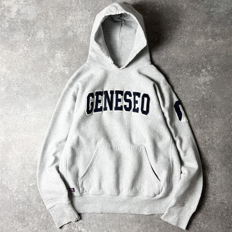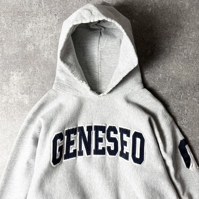90s USA製 Cotton Exchange カレッジ パッチ 刺繍 RWタイプ スウェット フード パーカー M / 90年代 アメリカ製 リバース トレーナー