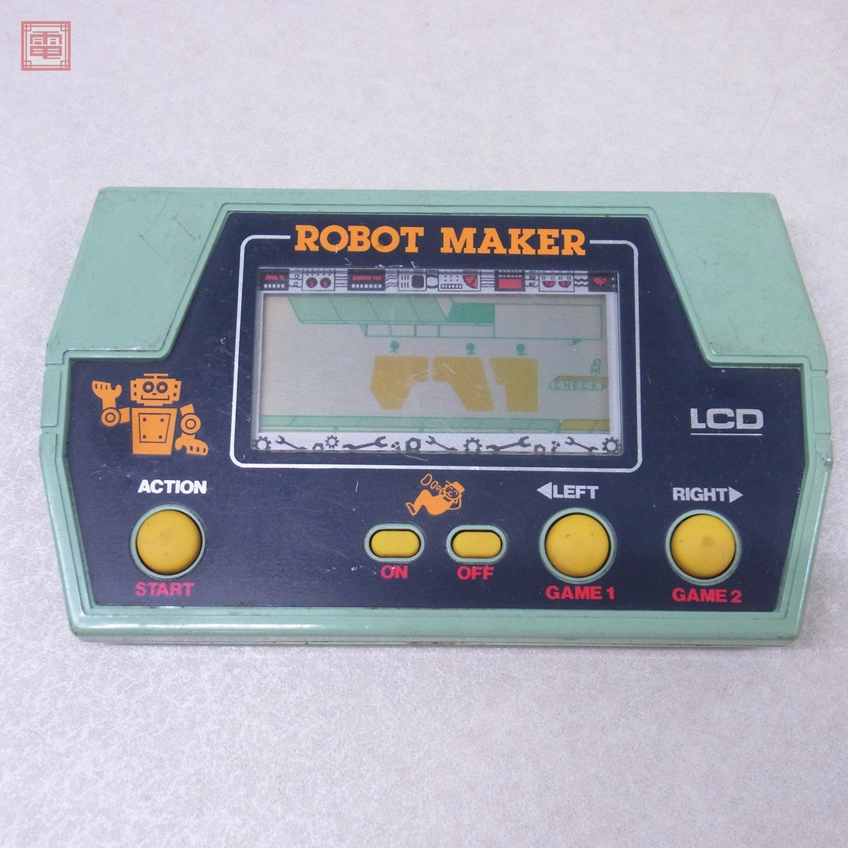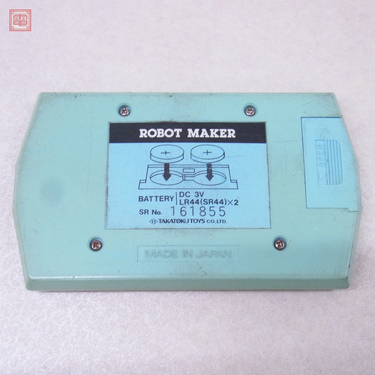 動作品 電子LSIゲーム ロボットメーカー ROBOT MAKER タカトクトイス TAKATOKU TOYS ■本体にスレ、キズ、汚れ、ヤケ、黄ばみ、画面にキズがあります。 ■電池は付属していません。 ■上記以外は未チェックです。 ■写真のものが全てです。付属物の有無や状態については写真からご判断ください。 ■チェックに使用したモニターやチェック機器等は、特に表記がない限りは付属いたしません。 ■商品到着後、当店の保証期間中は、商品及び箱や取説、付属品などを1つでも廃棄や破損をしないようにお願い致します。廃棄や破損をした場合、商品に問題があった場合でも対応や返金などの対処ができなくなります。 | |||