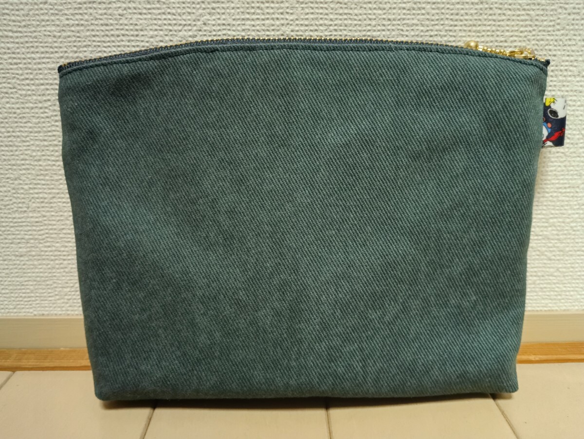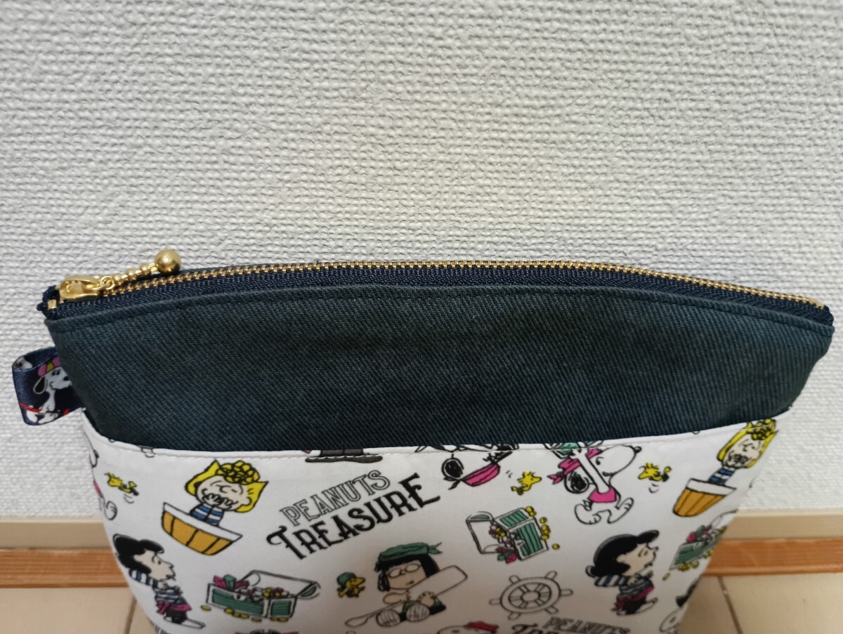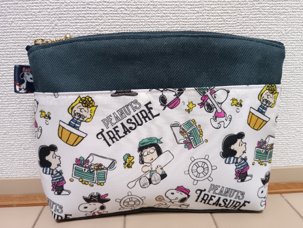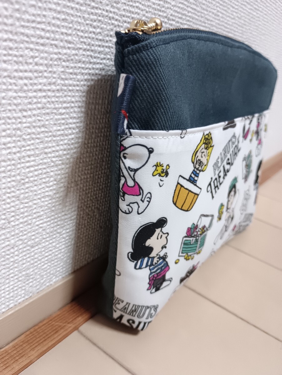 ☆ハンドメイド☆青緑色&スヌーピー柄ポーチ☆通帳ケース☆前ポケット有☆