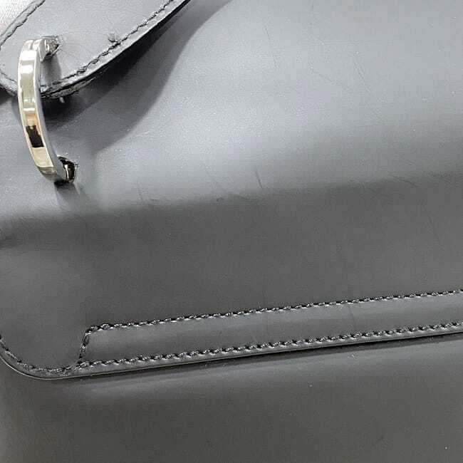 | 詳細説明 | 底部に僅かな汚れ、底面に薄傷、金具に小傷、ハンドルにひび割れ、ショルダーストラップに折れ、表面や底面に皺など使用感はございますがまだまだお使いいただけるお品物です。 |