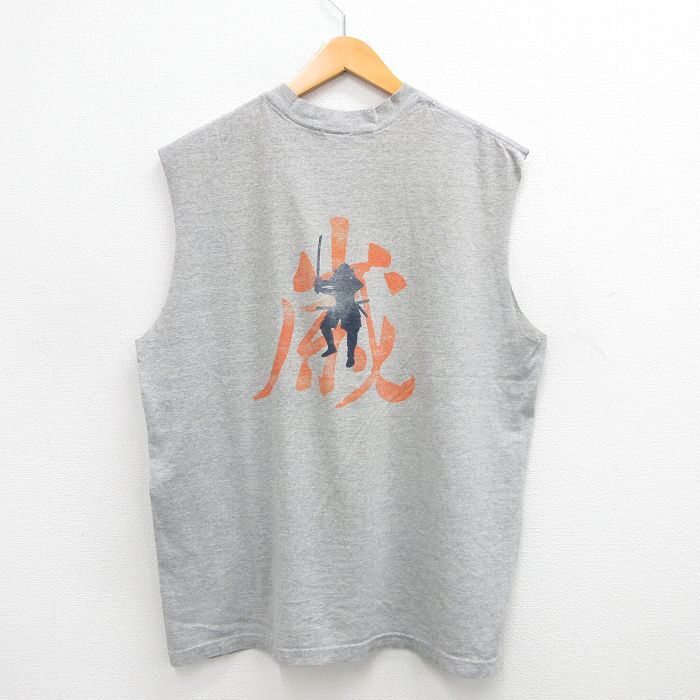 【商品名】 L★古着 ビンテージ ノースリーブ Tシャツ メンズ 00年代 00s 漢字 TRIPLE 5 SOUL コットン クルーネック グレー 霜降り