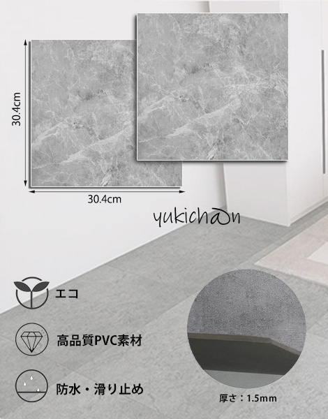 フロアタイル 大理石 クッションフロア 54枚約3畳分 30.4cm×30.4cm 厚手1.5mm 接着剤不要 リフォーム 滑り止め 賃貸OK 防水