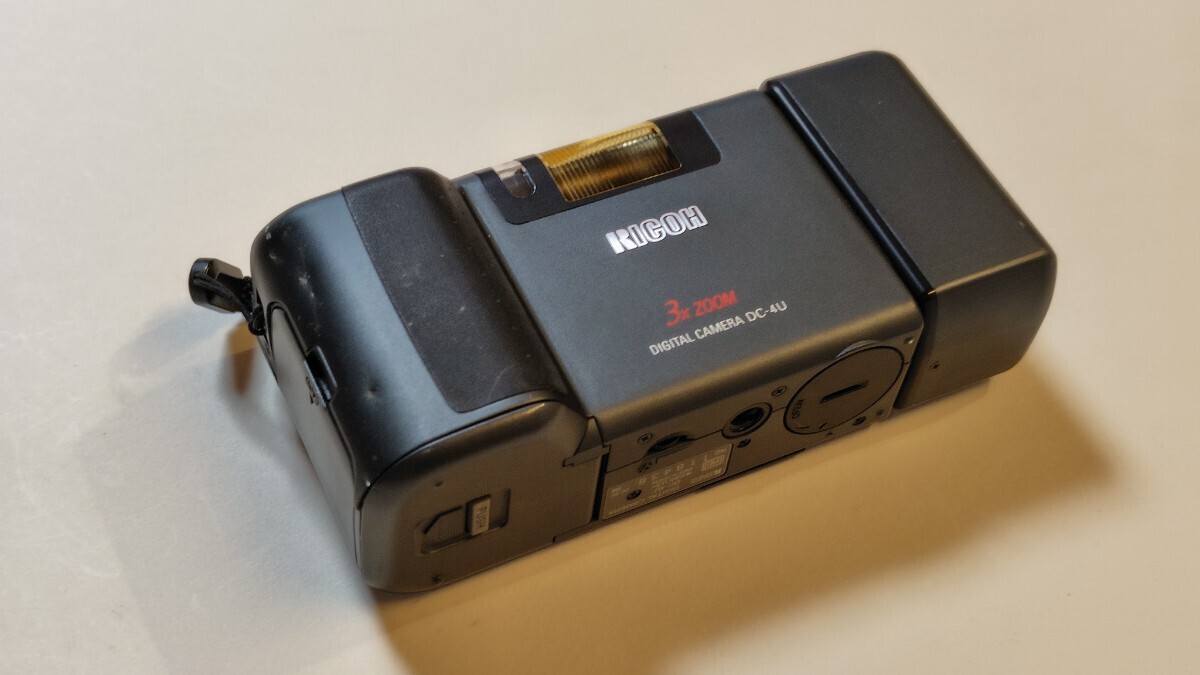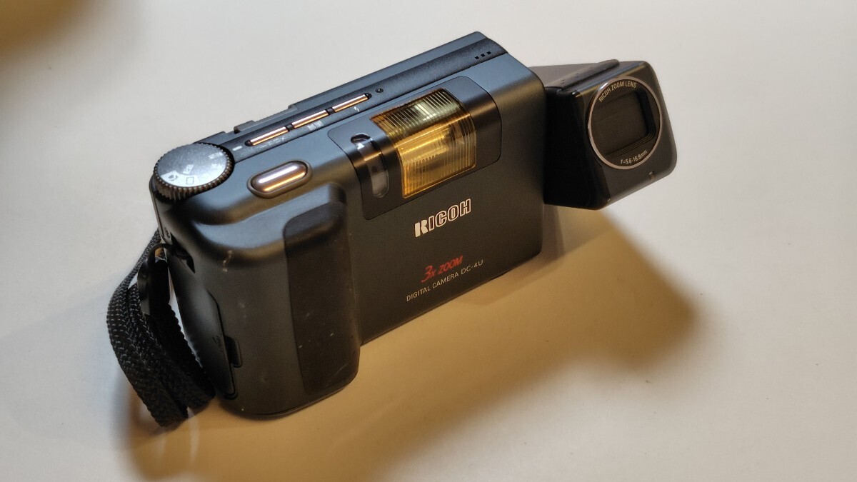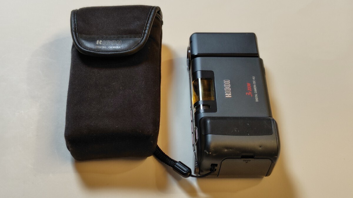 初期のコンパクトデジタルカメラ、スイベル型です。購入時付属品だったソフトケースとのセットです。