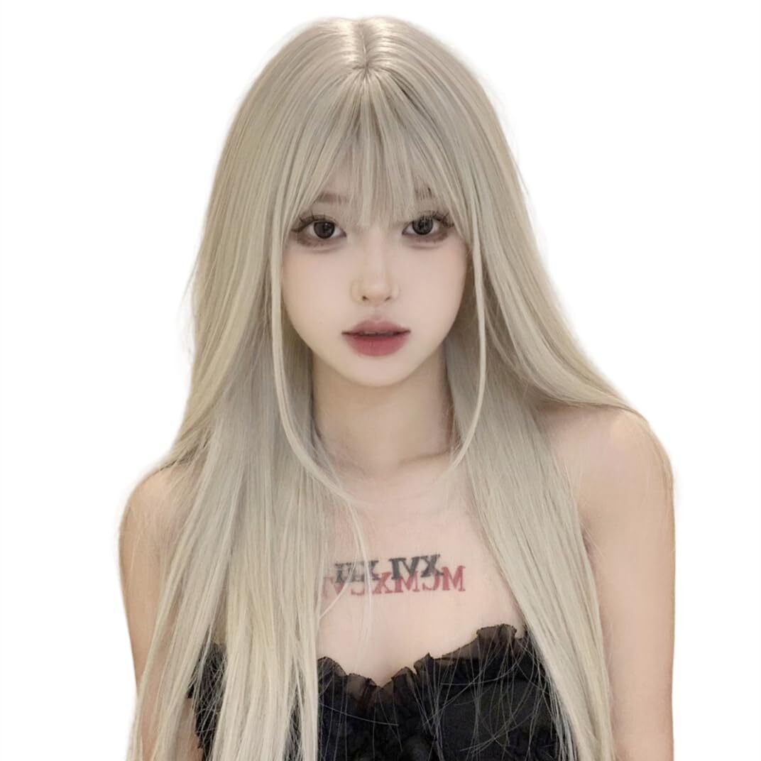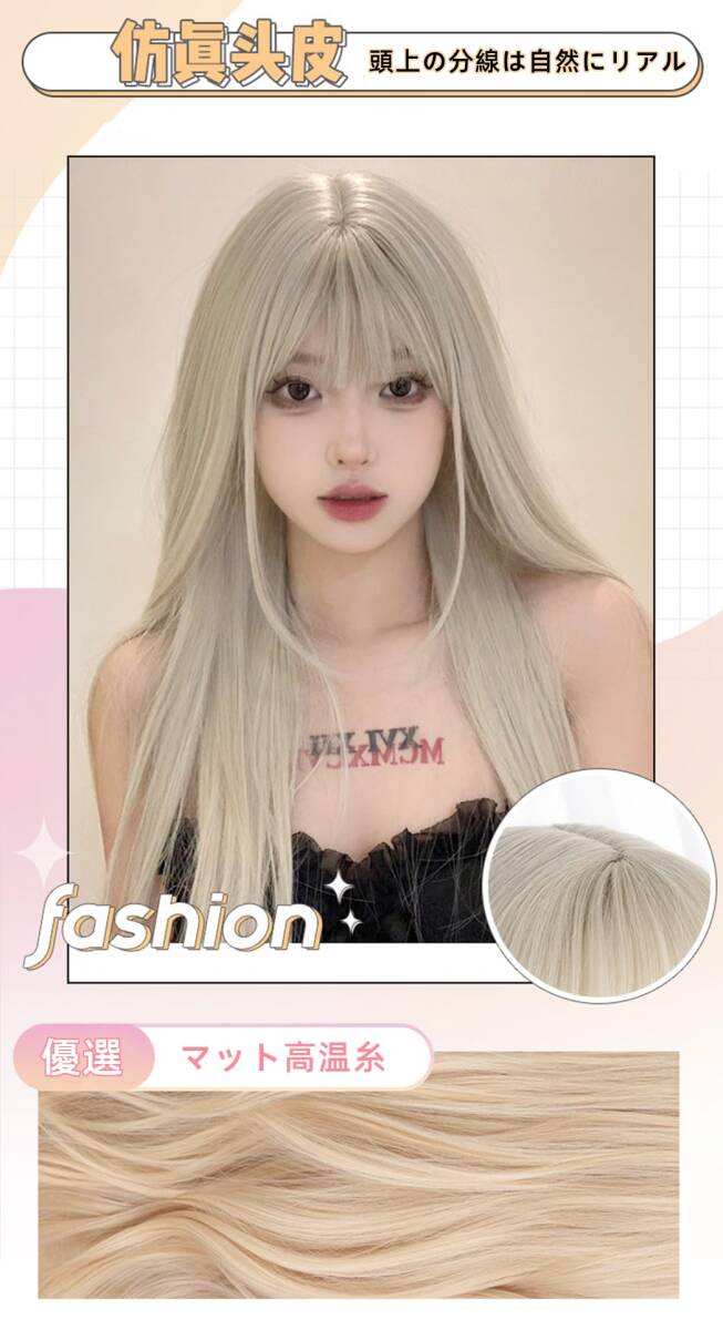 商品名 | Akixen レディース かつら 女性用 ロング ストレート ホワイトゴールド ウィッグ 米金 原宿風 小顔 耐熱性 コスプレ ヘアネット |