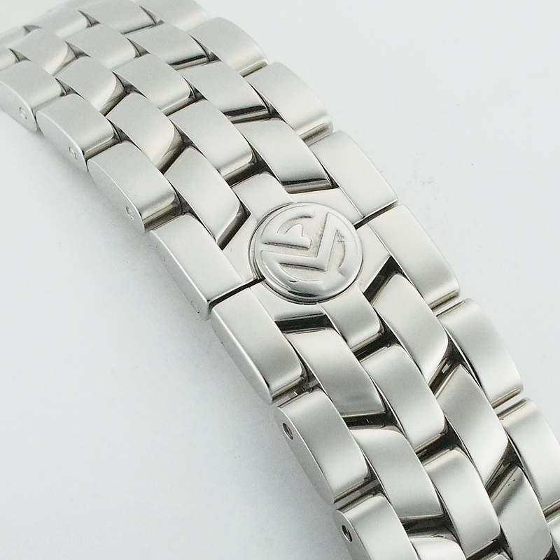 備考:1本のリューズで3つのタイムゾーンを調節できる、独自の機構が特徴の「マスターバンカー」。ダイヤルにはメインの時刻表示に加え、2つの独立したタイムゾーンが、まるで一つの芸術作品のように美しくレイアウトされています。分解清掃済み。ケース・裏蓋・バンドに小スレがあり、バックルのロゴ部分に小傷がございますが、大きく目立つような傷は無く、状態の良いお品となっております。