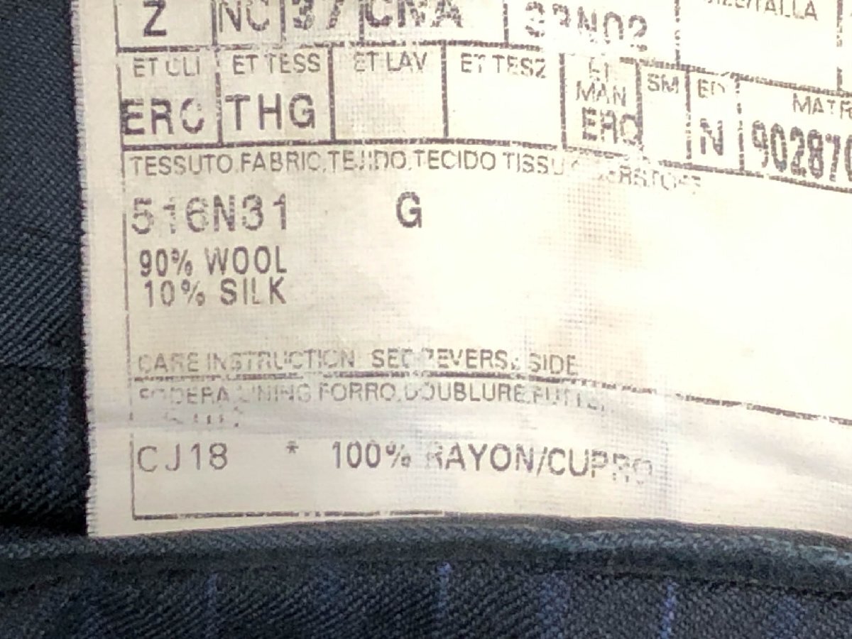 ・着用感、スレ、テカリ、ジャケット襟周りに薄い汚れ、左脇部分にリペア跡、裏地全体にスレダメージ、破れ、、ブランドタグとベント部分にほつれ、スラックス裏地にシミ汚れ、ファスナーフライ縁にスレ破れがございます。御理解の上ご購入下さい。