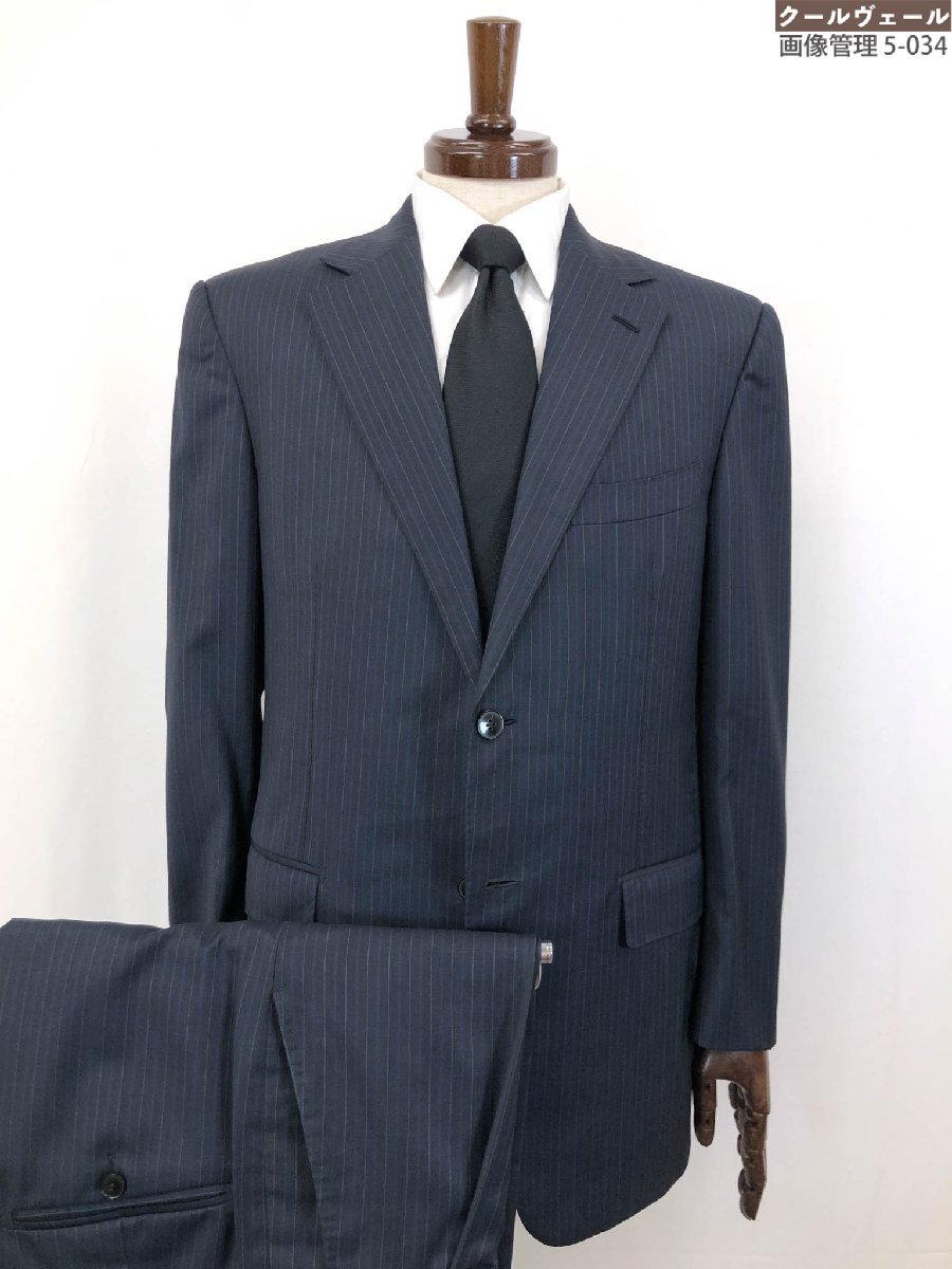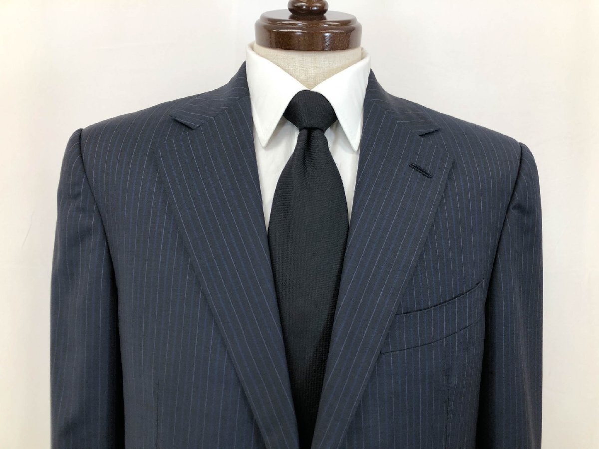 【Ermenegildo Zegna couture エルメネジルドゼニアクチュール】2542N1シルク混 2B スーツ (メンズ) 48C/7DROP 紺 ストライプ柄◇32RMS2391