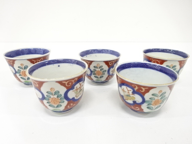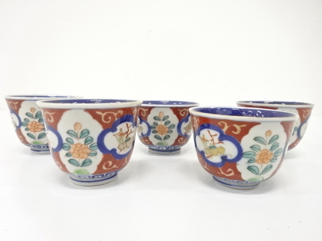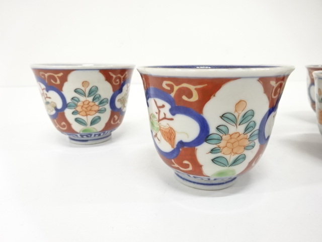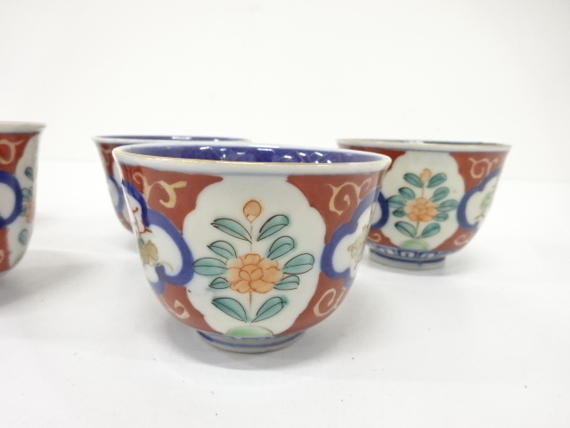 古伊万里 赤絵 花 蕎麦猪口 5客揃 (IAB3DHP-035)