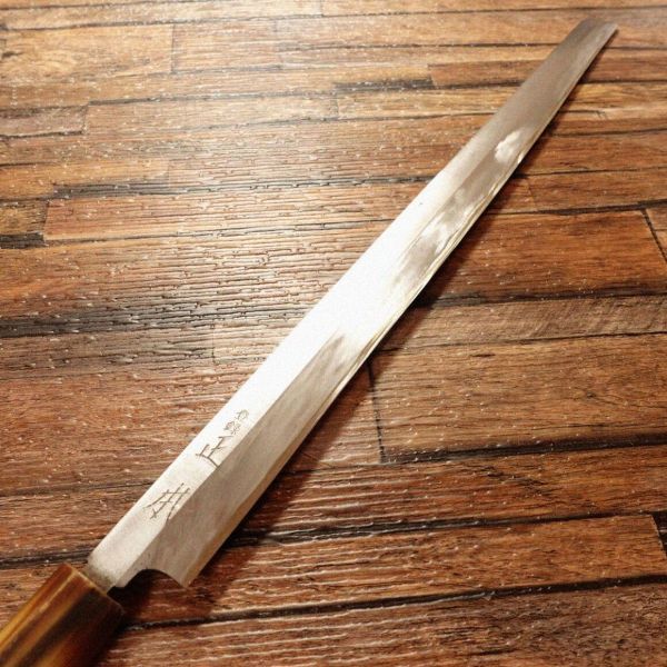 蛸引包丁は柳刃包丁と同様に刺身を引くのに用いられる和包丁ですが、関東型で先が直線的に伸びているのが特徴です。片刃仕様で刺身を美しく引くことができます。
