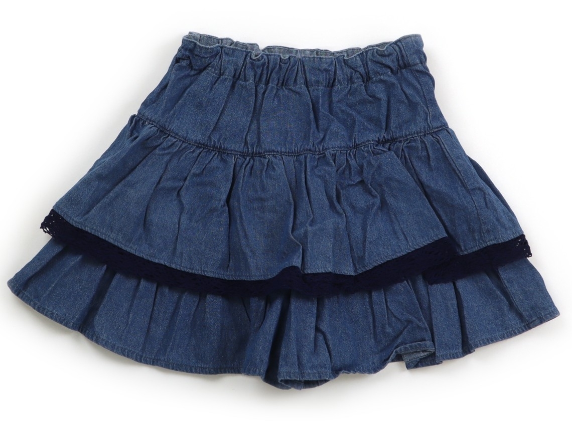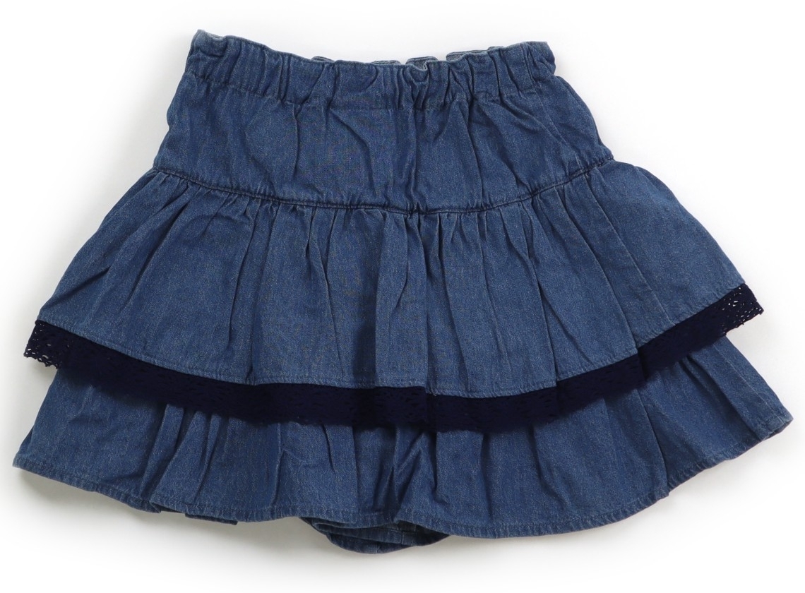 ダンガリー地で、ウエストはサイズ調整ゴムが付いています。色褪せ・シワあり。