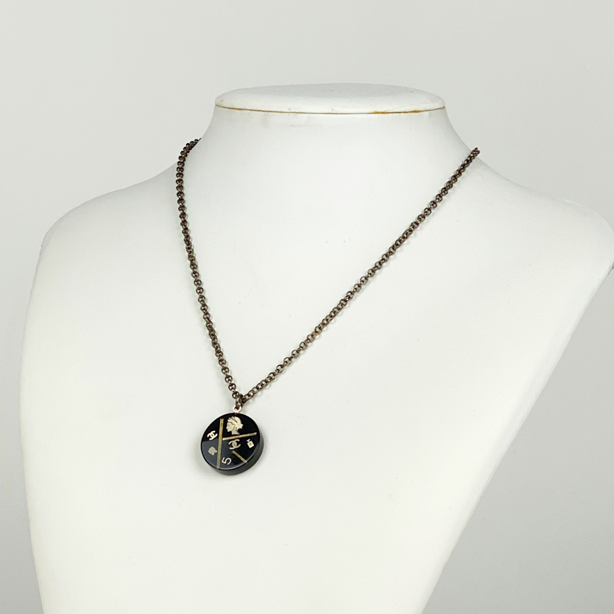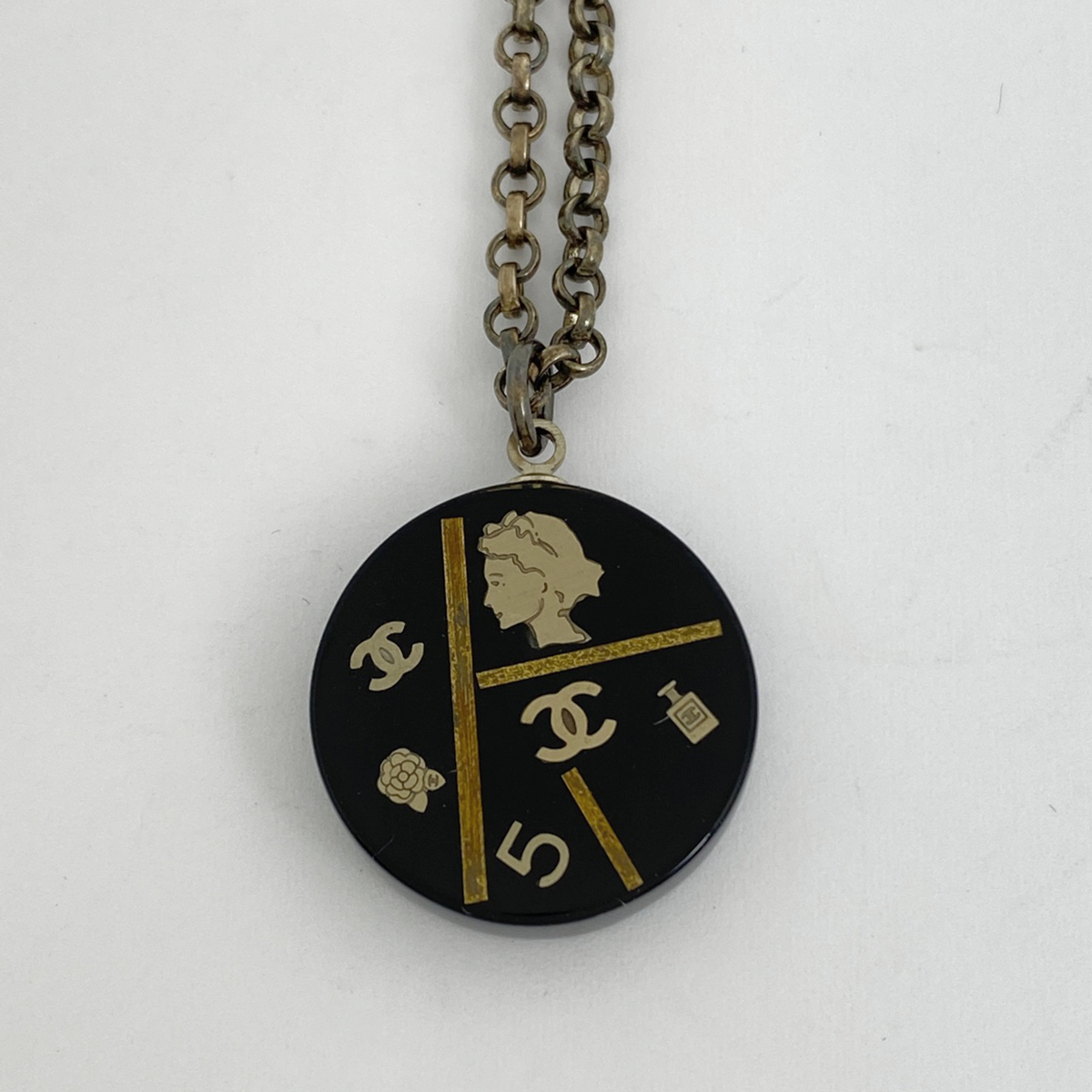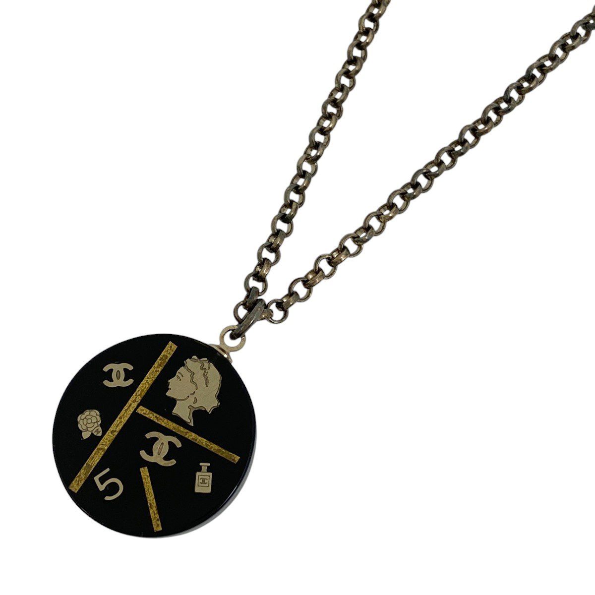 | シャネル CHANEL ココマーク チェーン ネックレス ラウンド 丸型 カメリア 香水 ネックレス GP プラスチック ゴールド ブラック レディース 【中古】 |