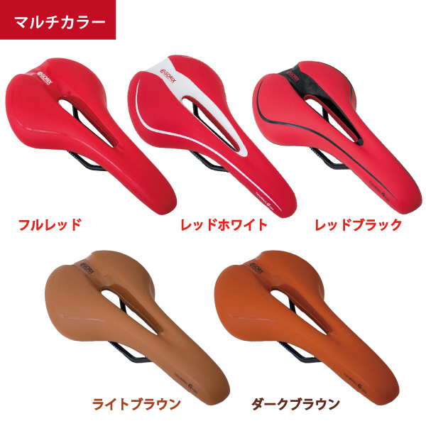 フラットシルエットとバックは大きなラウンド形状 安定して長く座れる柔らかい低反発タイプのサドルです。 開口タイプのホール付きで尿道への圧迫感を和らげます。 底面以外の厚みは、厚手のクッション素材 張りのある柔らかい反発素材で、身体の重量や衝撃を和らげてお尻の痛みを軽減 自転車全般、ロードバイク、マウンテンバイク、クロスバイク、ミニベロのサイクリング、 出勤通学に日常使いとして使用できる安定感のあるサドルです。 シンプルなロゴ入りで、車体に合わせてカスタマイズしやすいデザインです。 サイズ約:幅15×高さ7.5×長さ27.5×レール幅(先-先)5cm 重量:約330g 材質:PU革、ポリエステル レール:スチール 商品は入荷によりキズがある場合があります。 傷や細かい汚れが気になる方や神経質な方は入札をお控え下さい。 入荷時期により予告無く一部仕様変更する場合が有ります。 カラーはディスプレイ種類環境等により実物と異なって見える場合がございます。 |
